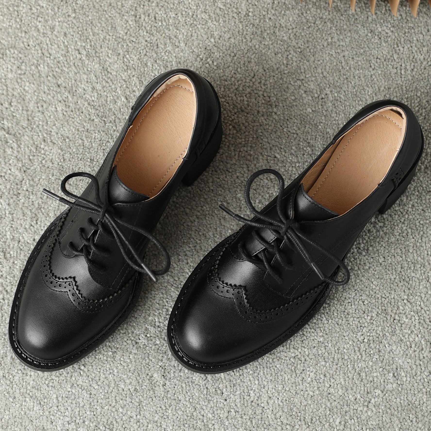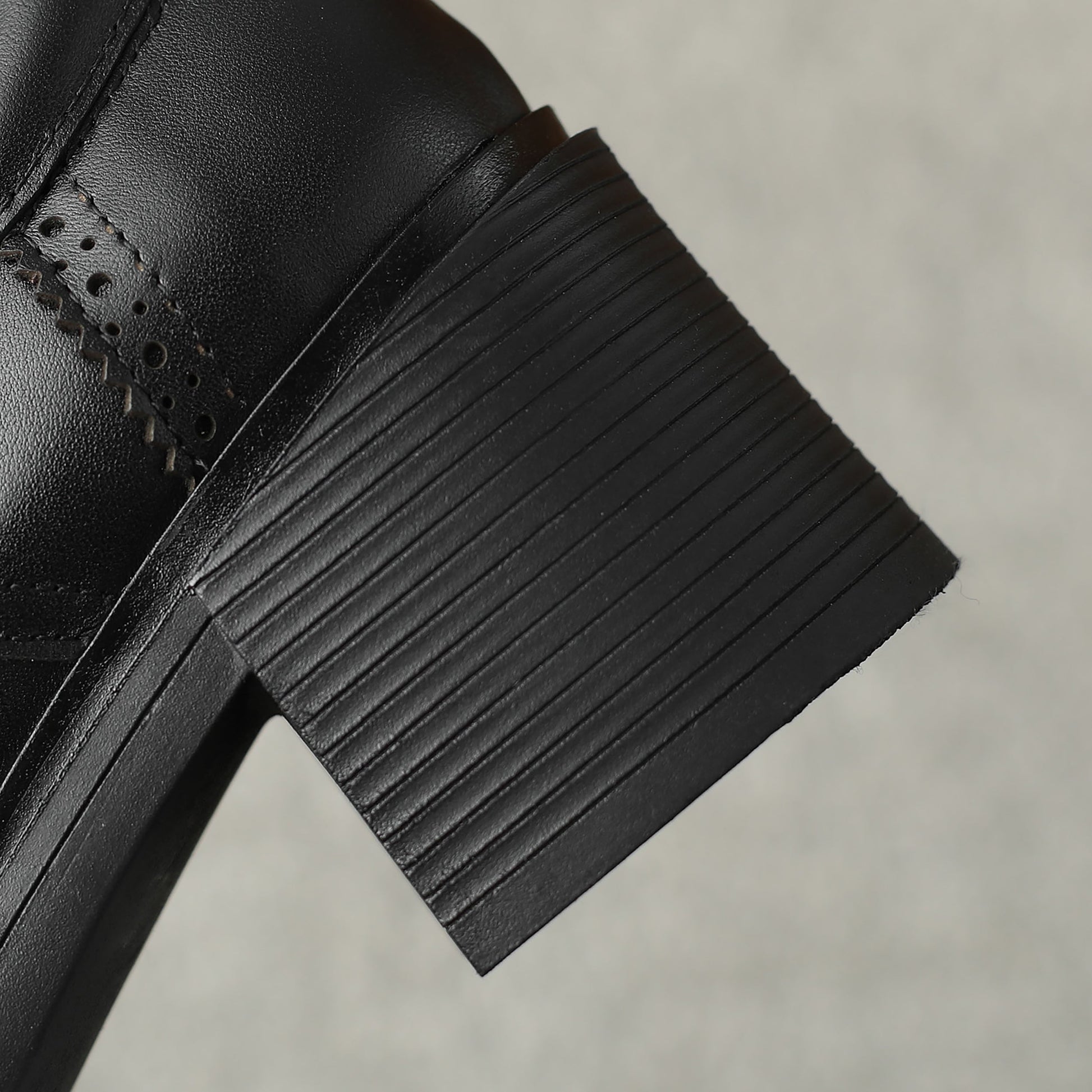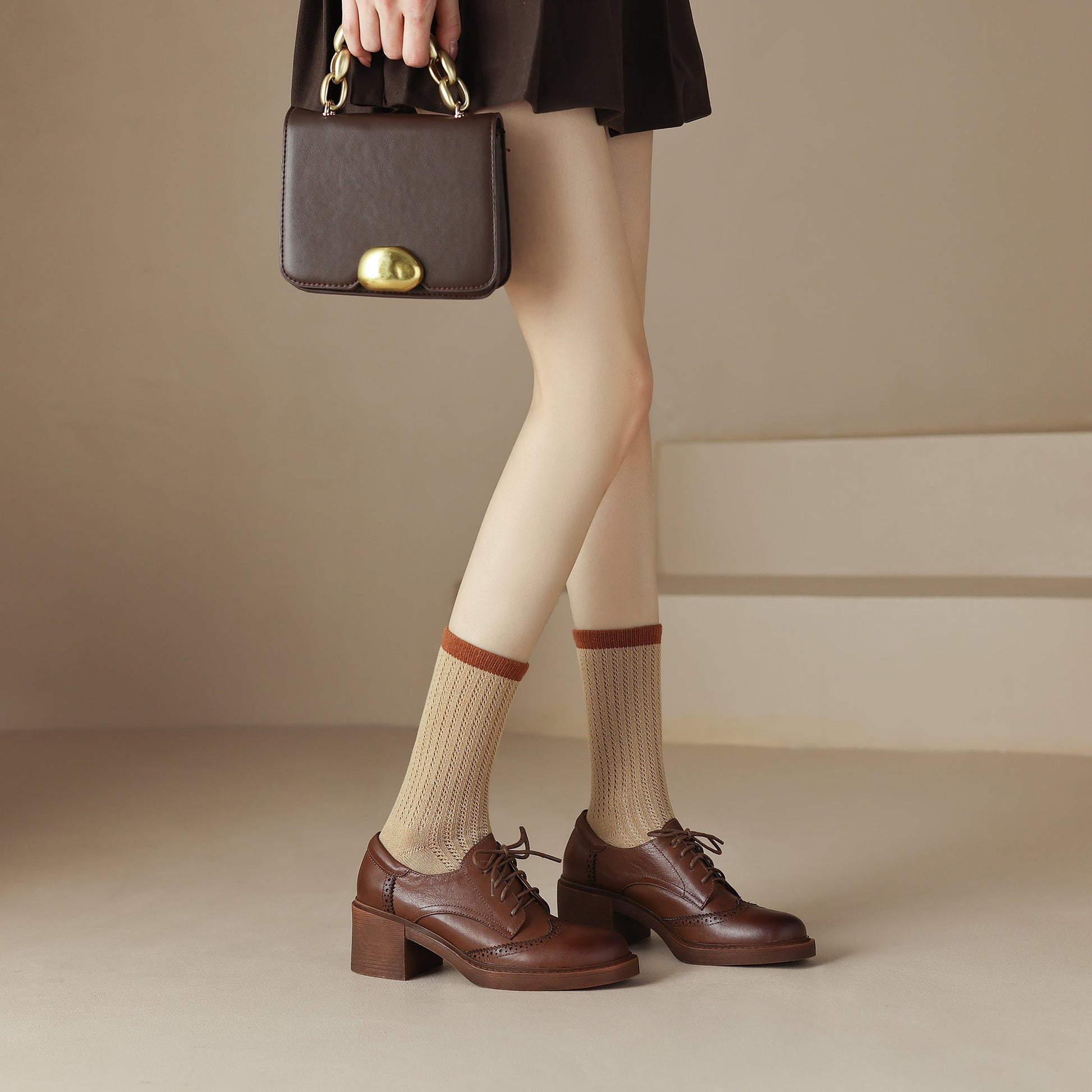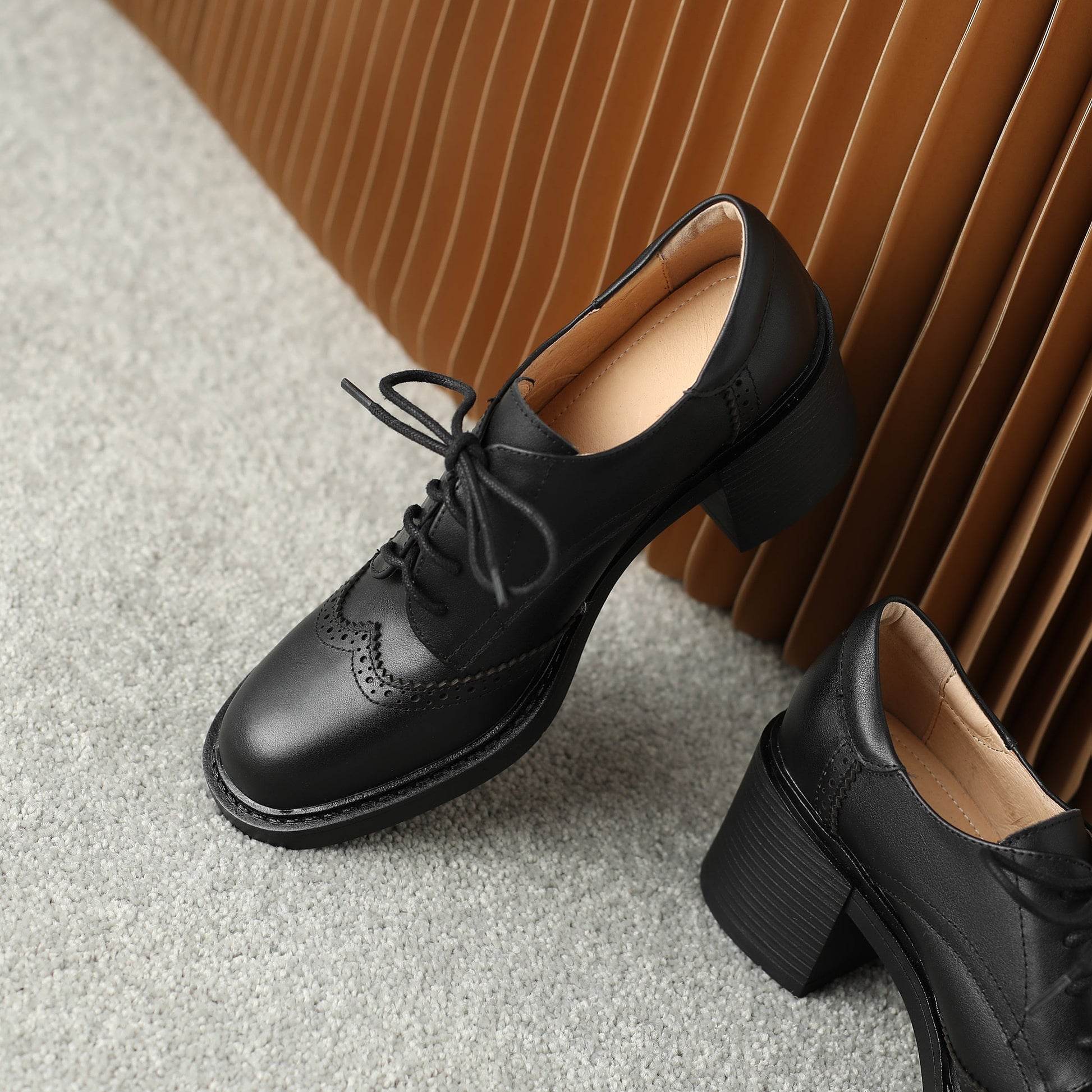 Handmade High Chunky Heel Leather Brogues Womens Shoes
