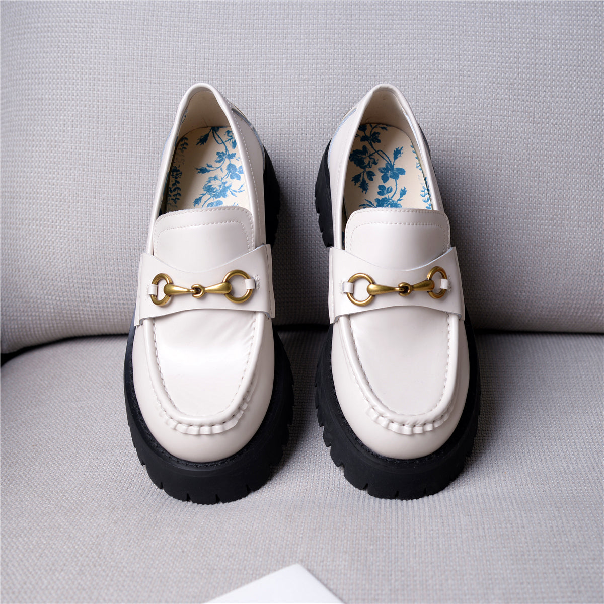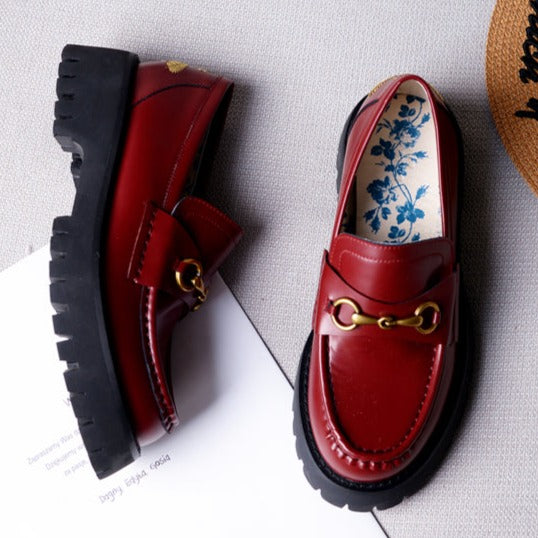Handmade Leather Loafers Metal Platform Vintage Mary Jane Shoes