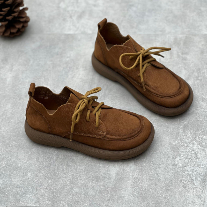 Handmade Womens Lace-up Leather Oxford Flat Shoes