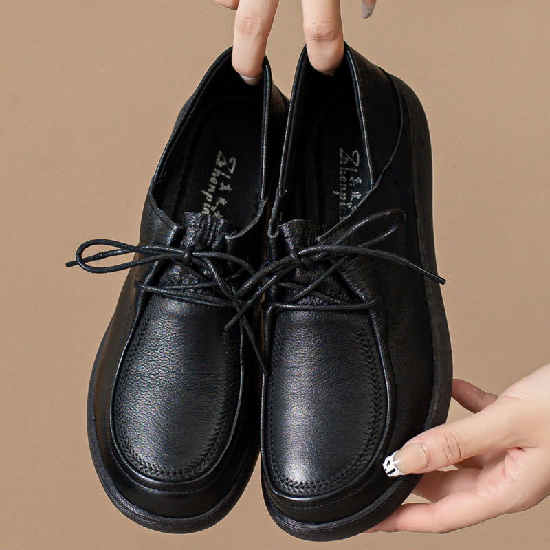 Leather Slip-on Comfort Loafers Lace-up Womens Shoes