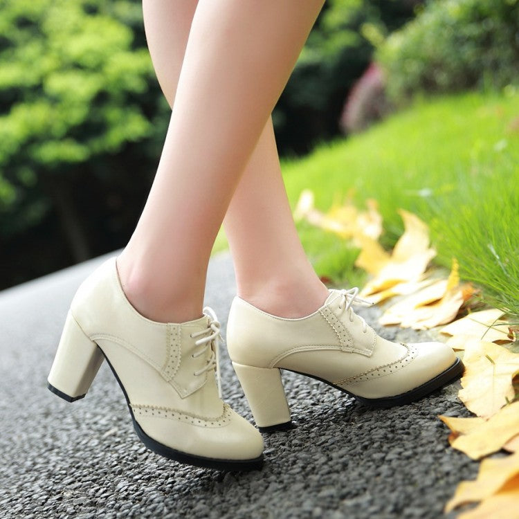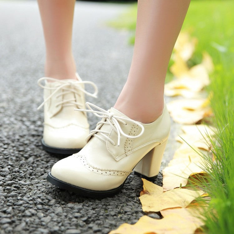 Oxford Shoes for Women Lace-up Chunky Dress Pump Shoes