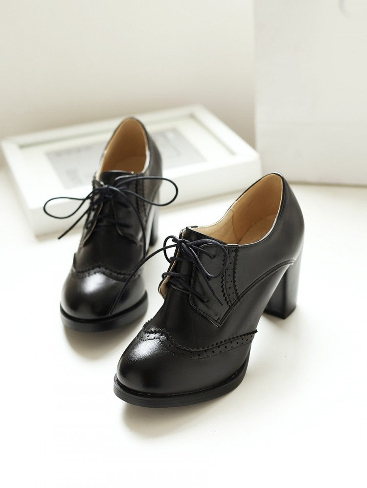 - Block High Heels Oxfords Heel Height7.5cm=2.95inch.