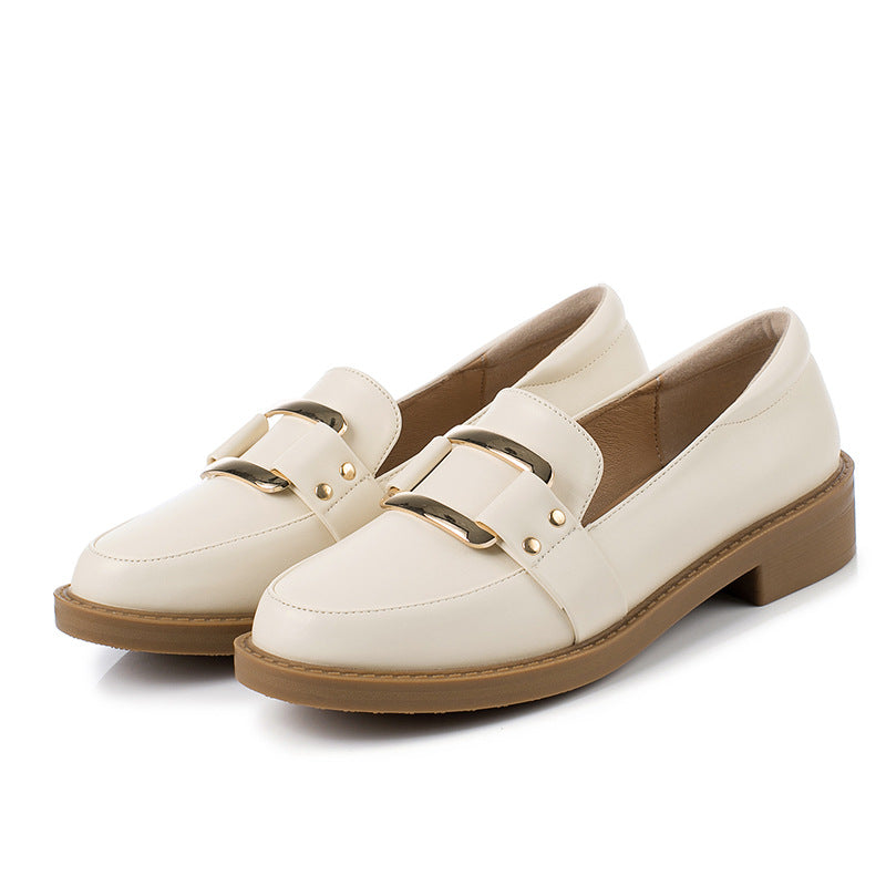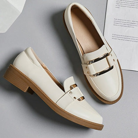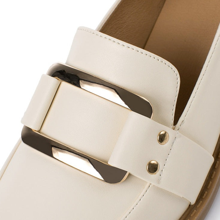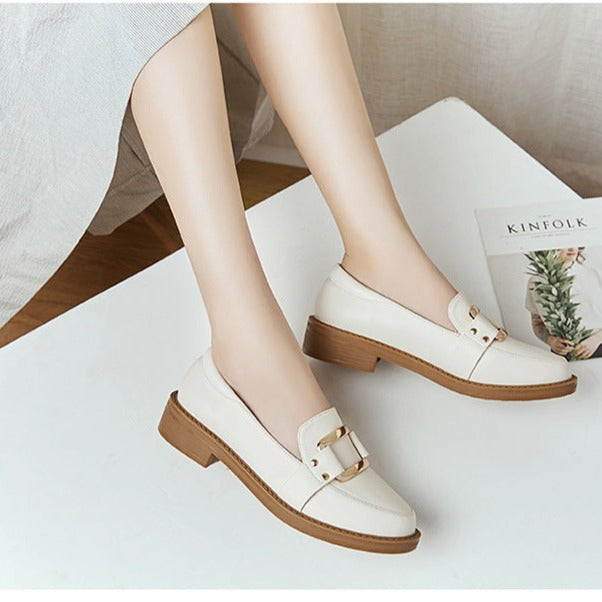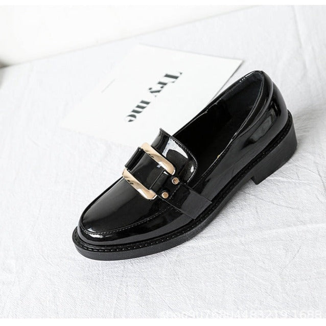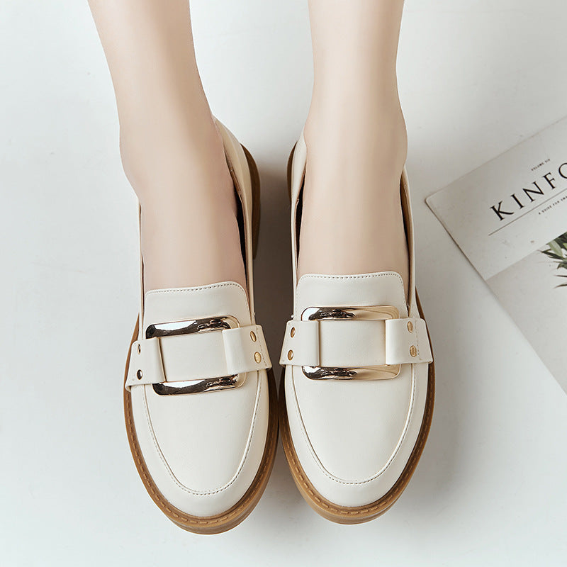 Retro British Style Loafers Women's Gold Buckle Single Shoe