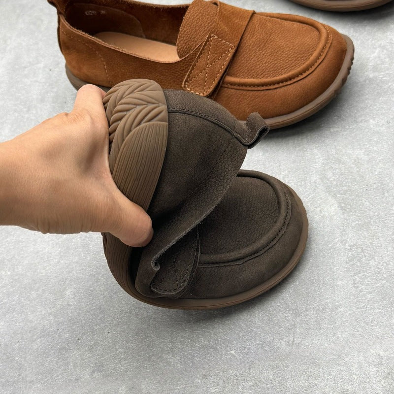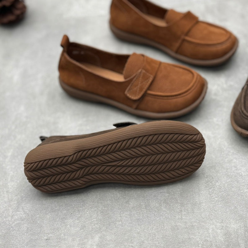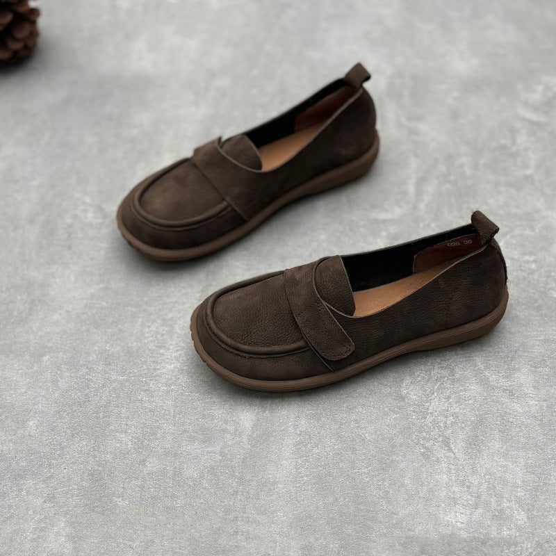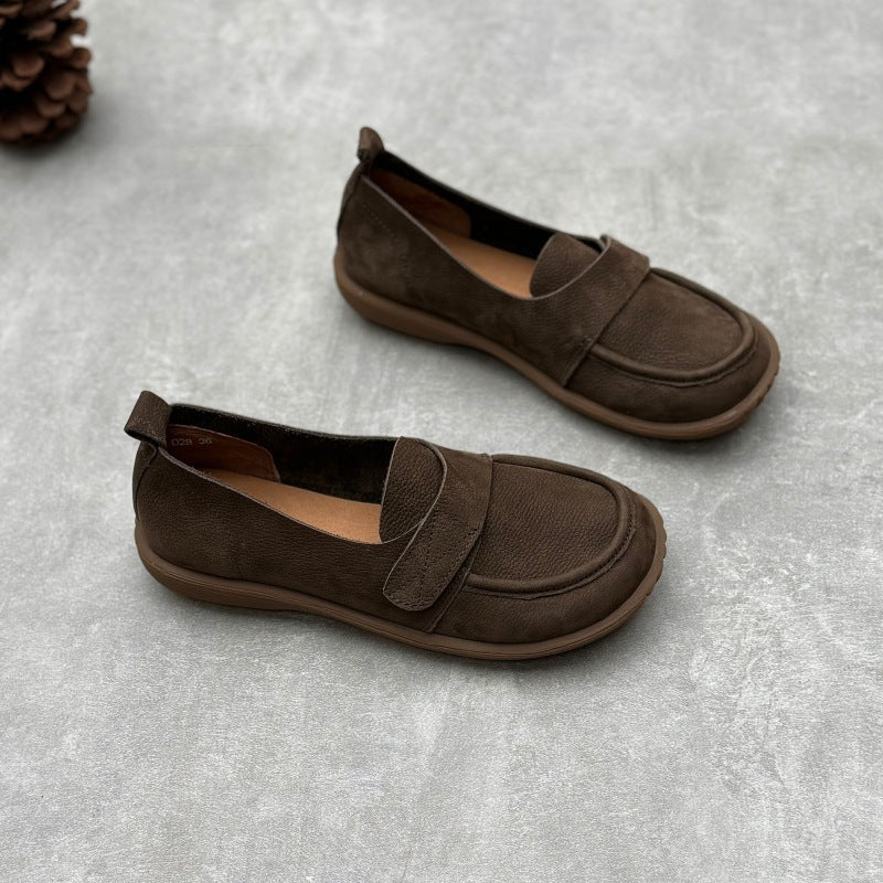 Retro Genuine Leather Flats Loafers Handmade Slip-on Women's Shoes