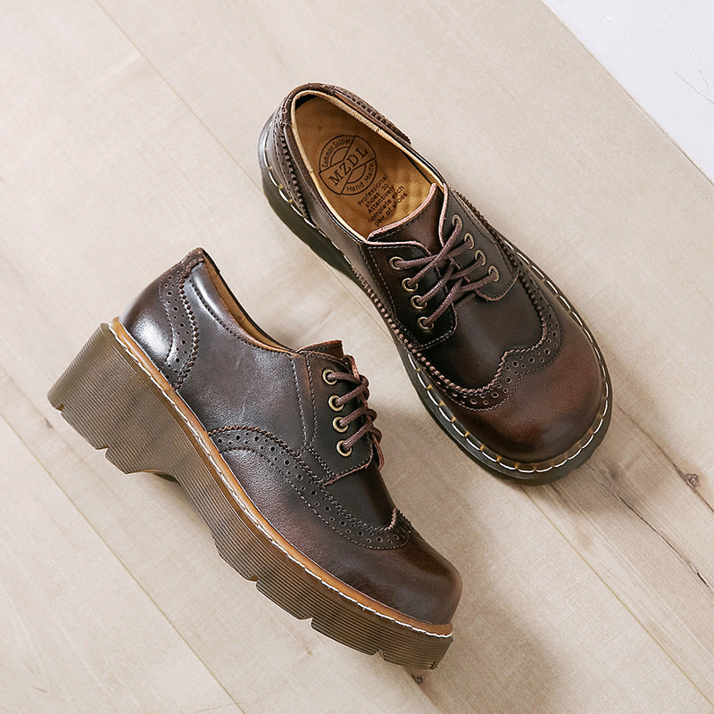 Vintage Oxford Loafers Brogues Women's Lace Up Platform Shoes