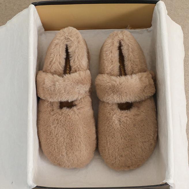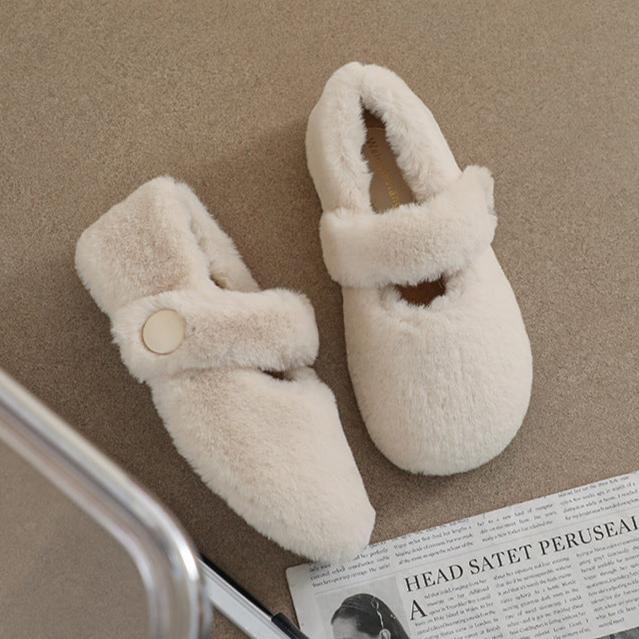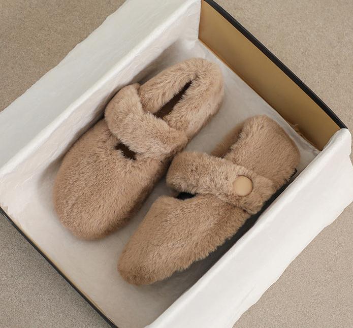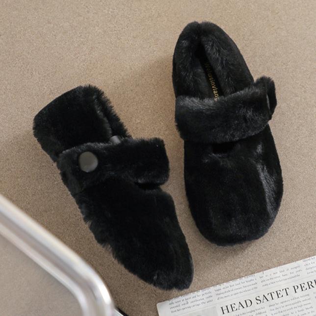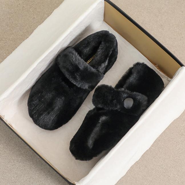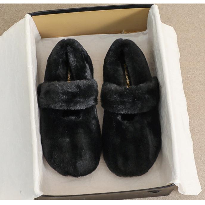 Women Faux-Fur Loafers Cute warm Winter Fleece Flat Casual Shoes