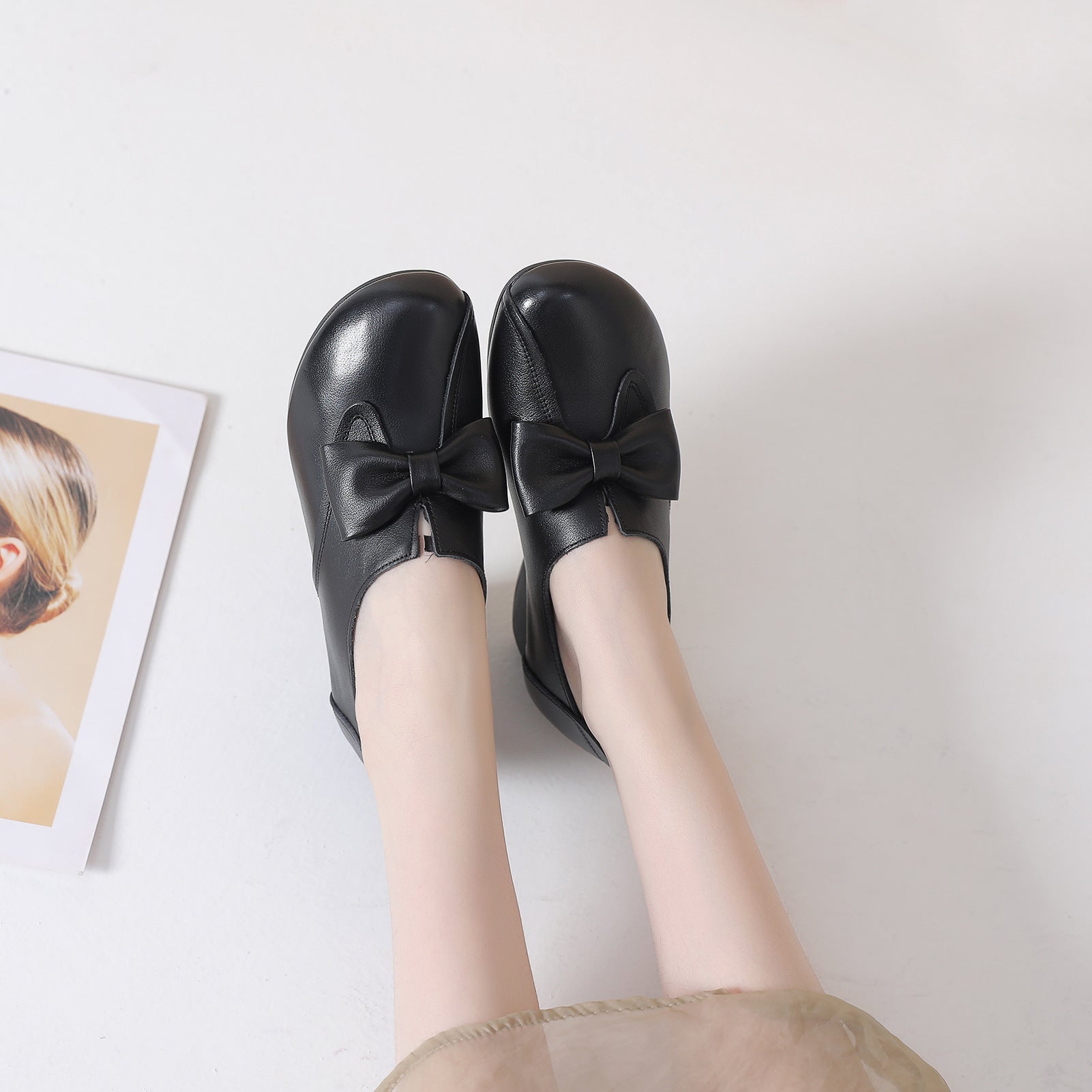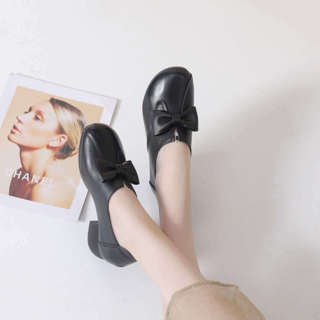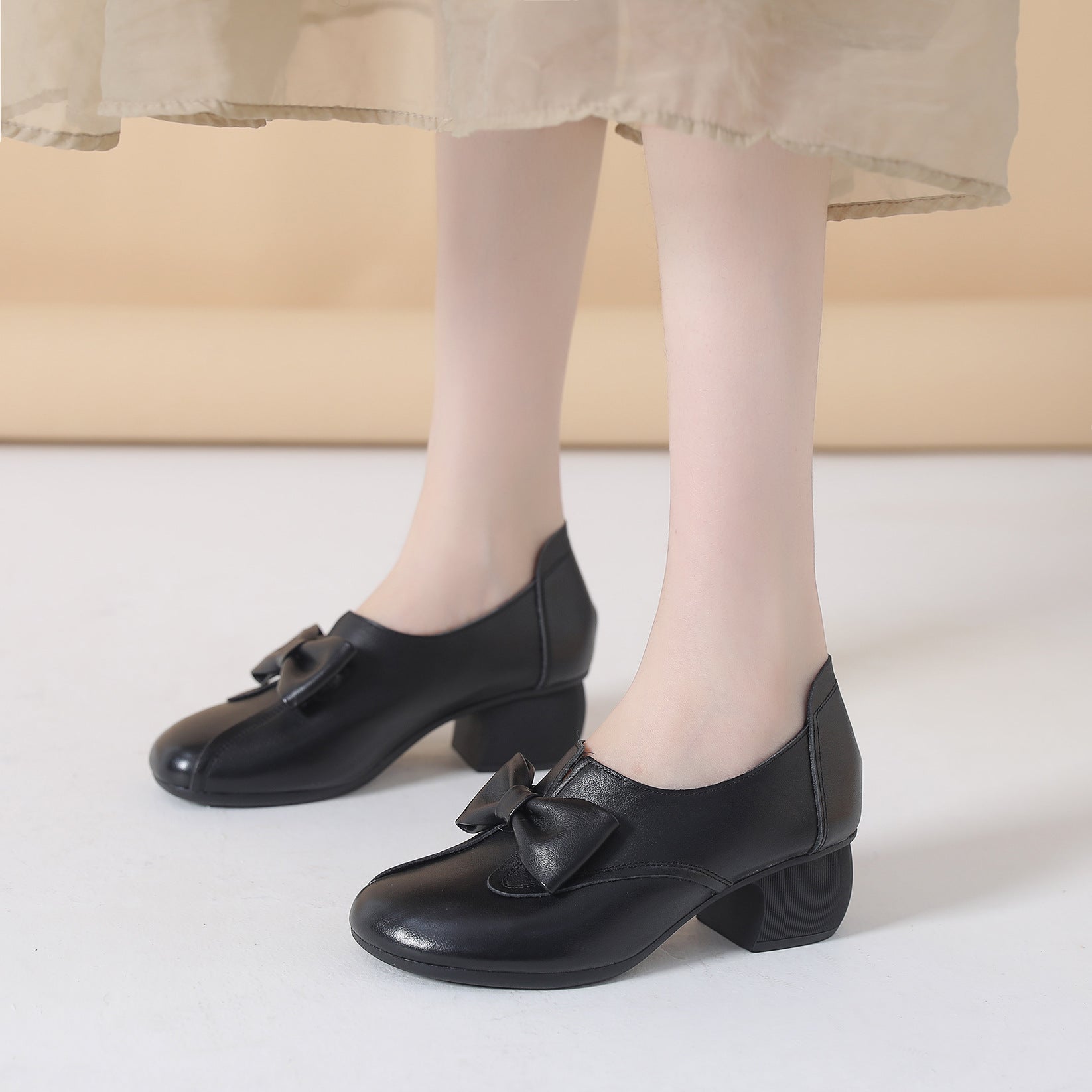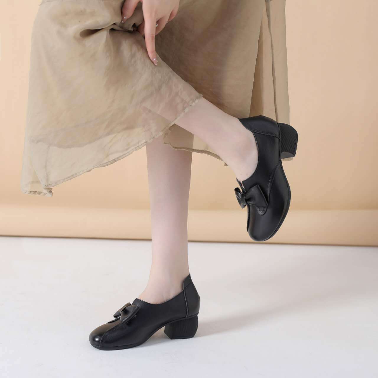Women Genuine Leather Ethnic Style Head Layer Cowhide Retro Chunky Heel Shoes