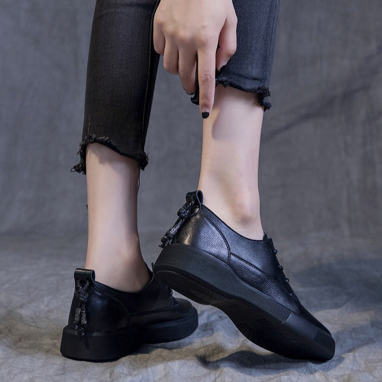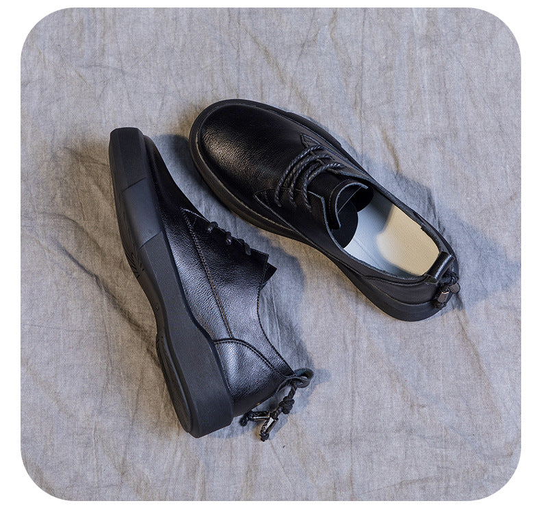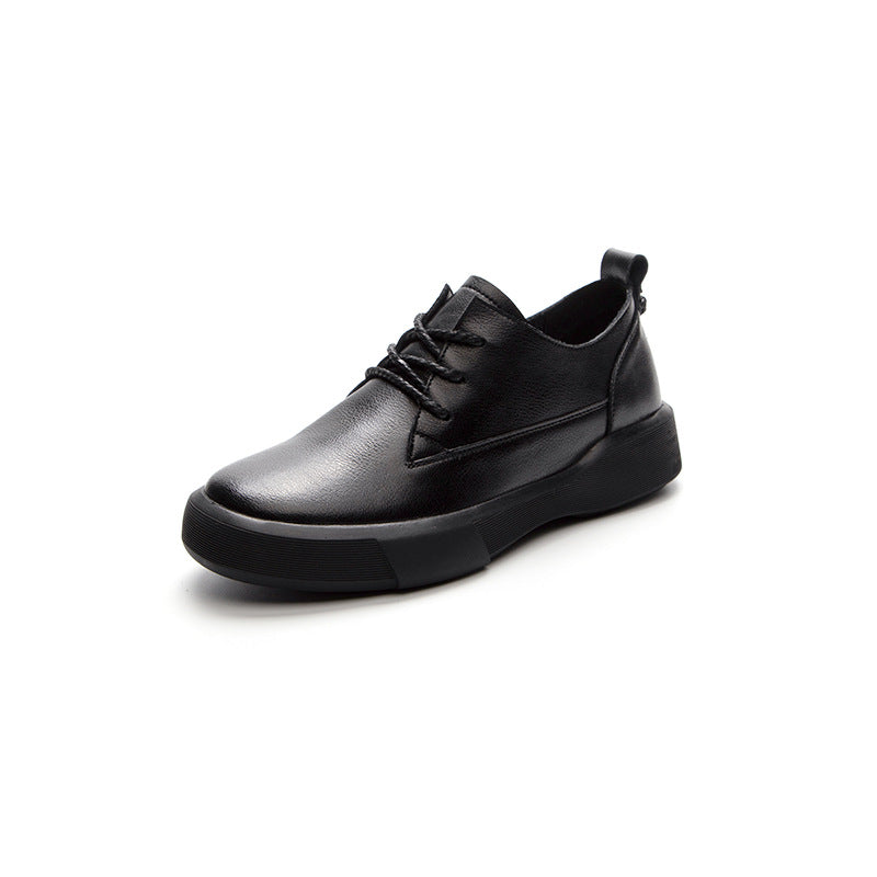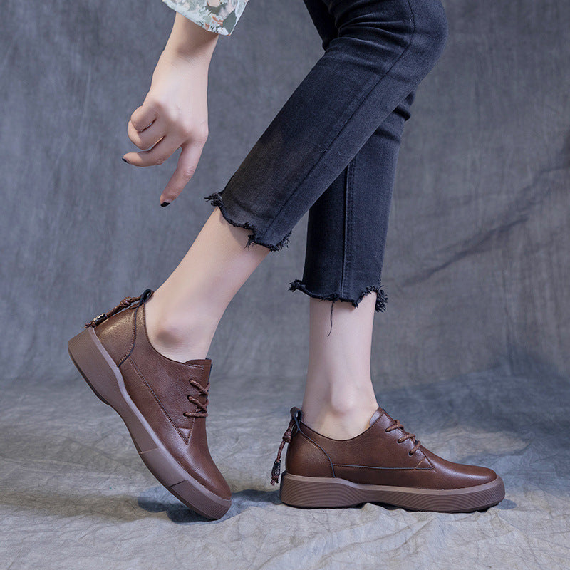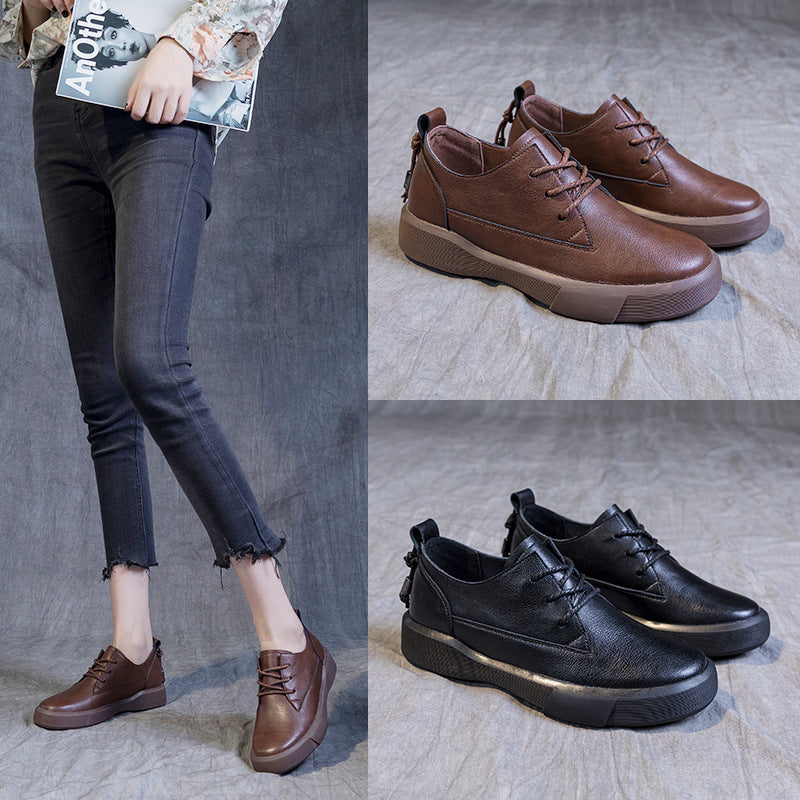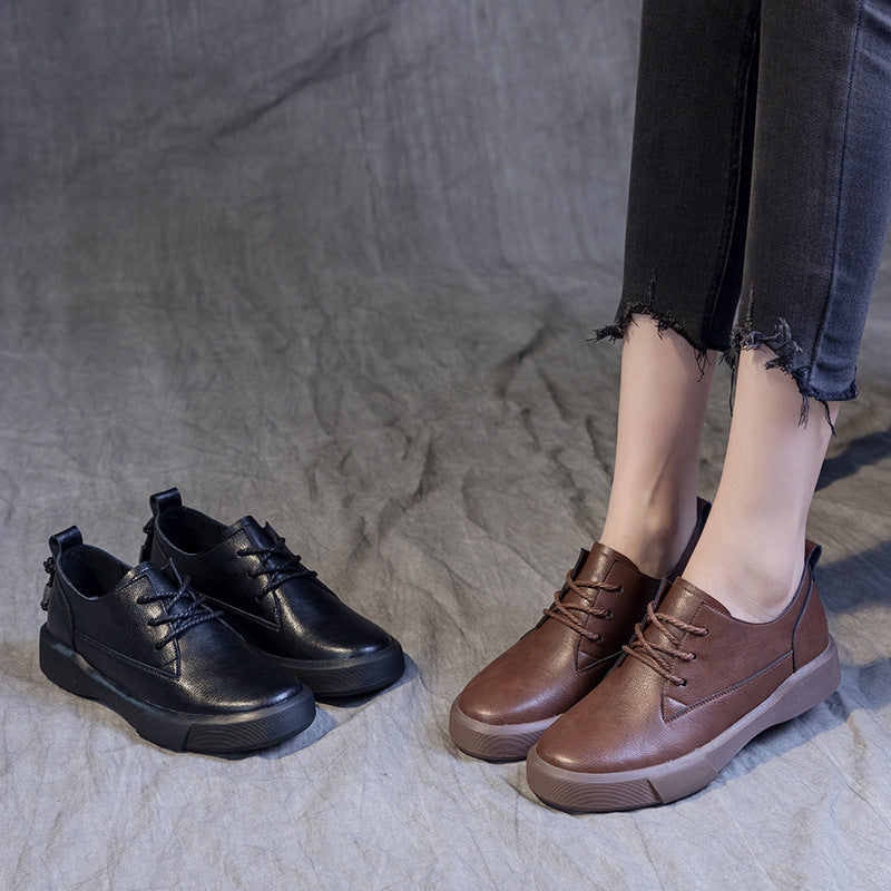 Womens Ankle Loafers Leather Round Toe Lace Up Flats Shoes