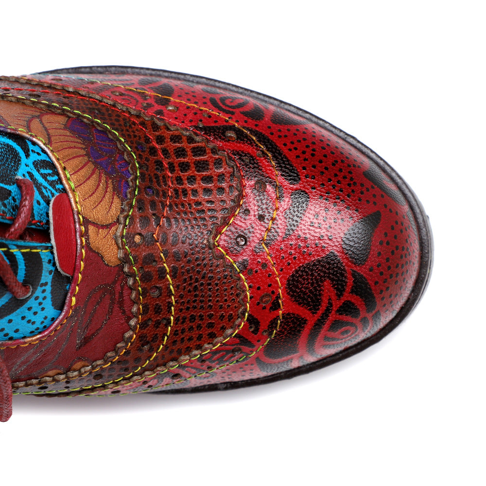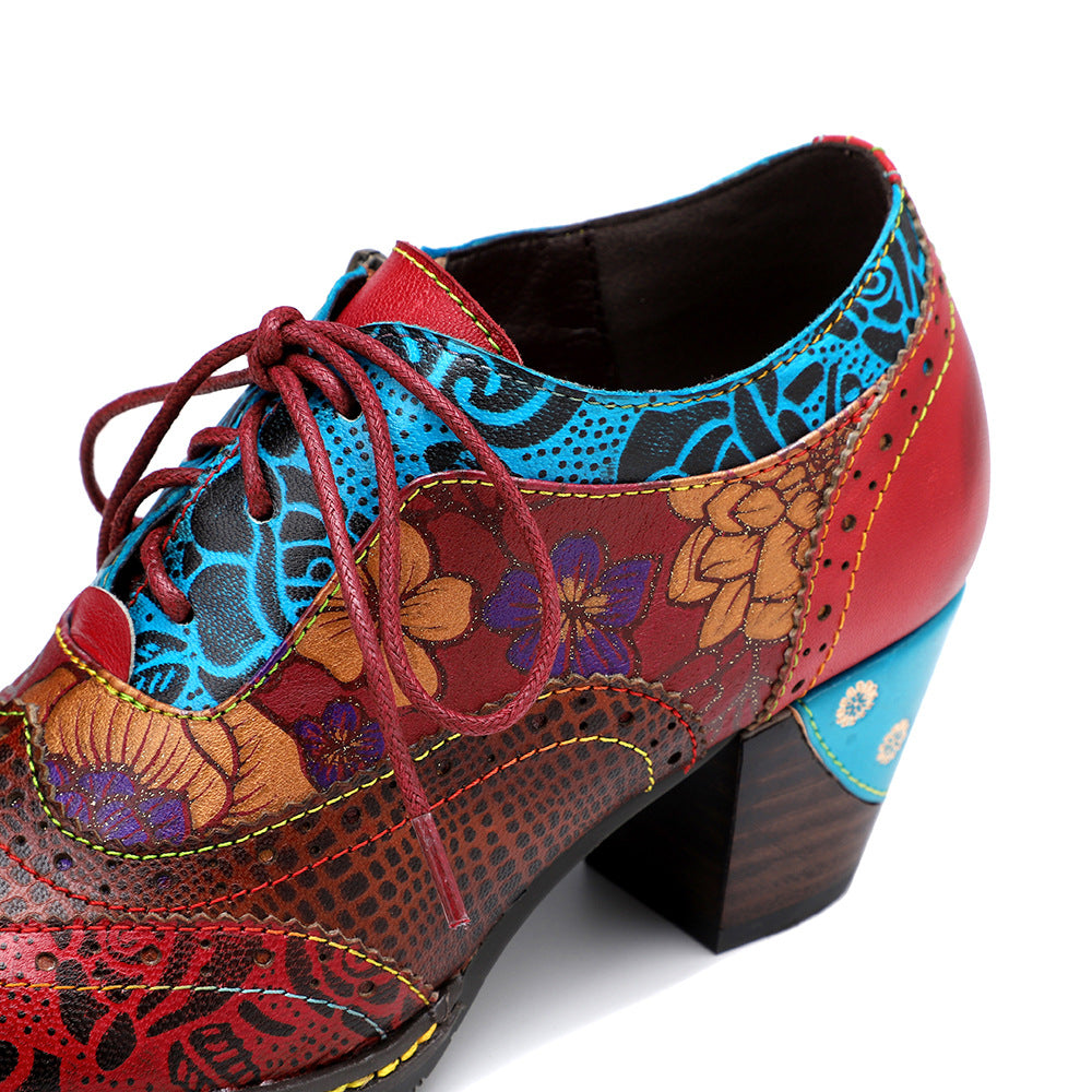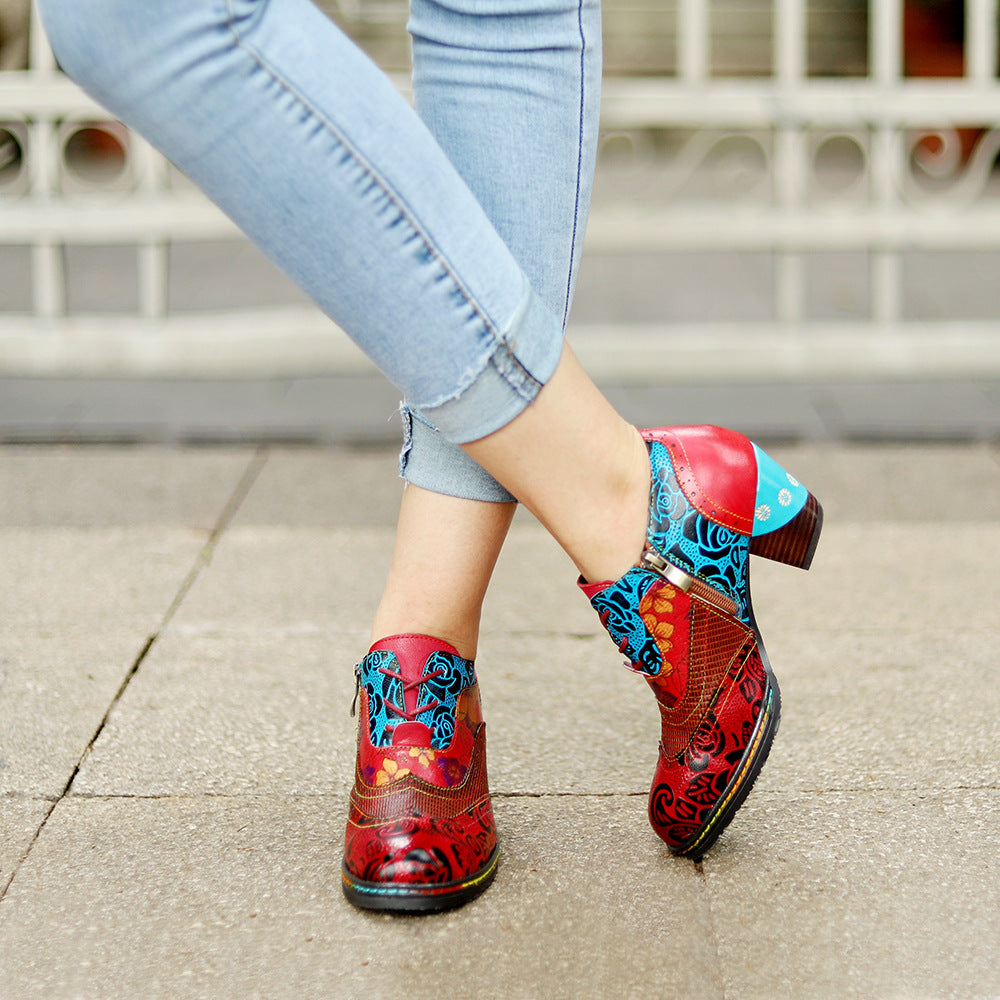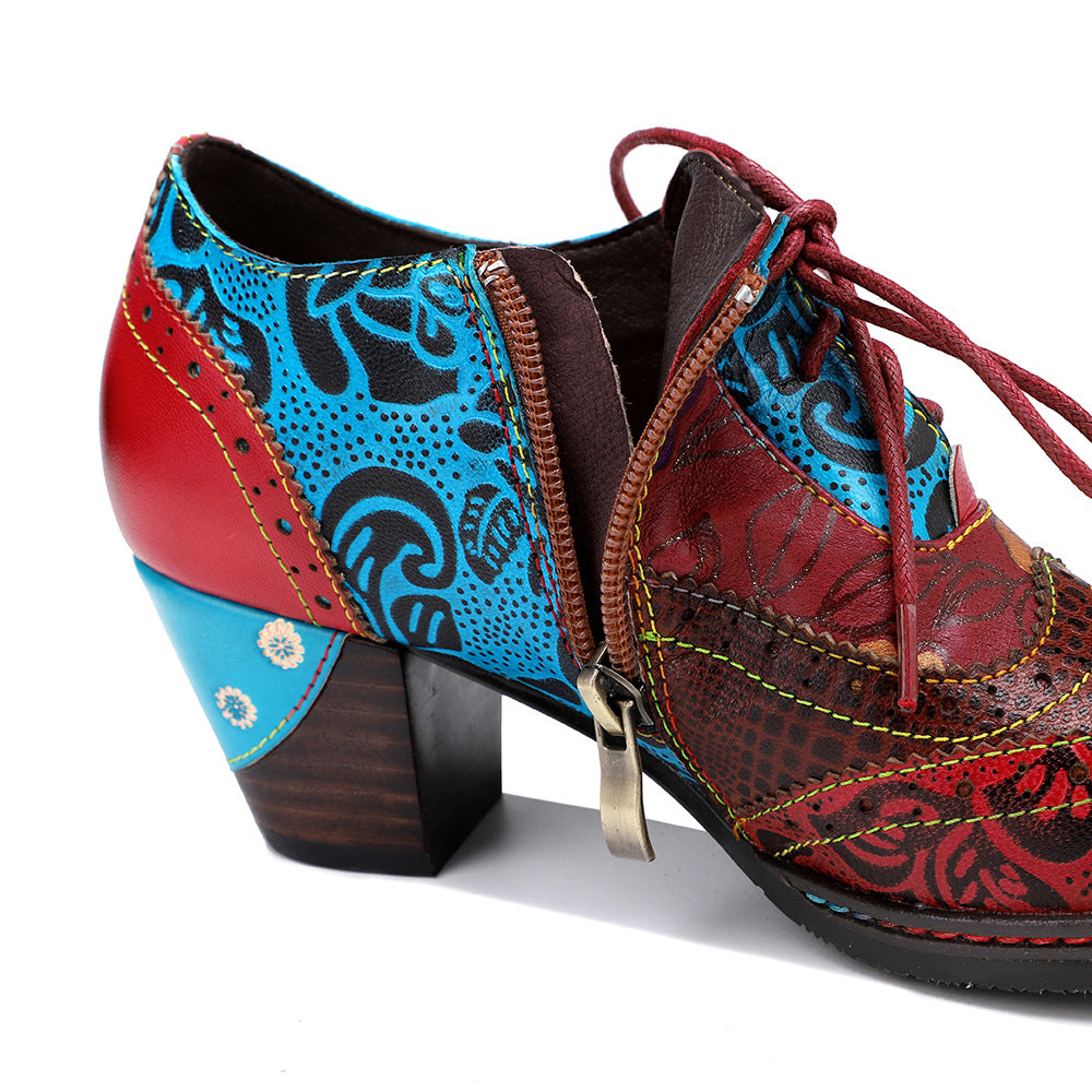 Hand rubbed color. laser engraving. precision turning lines. Bright colors. bohemian ethnic style. chunky heel allows you to walk all day without getting tired.
