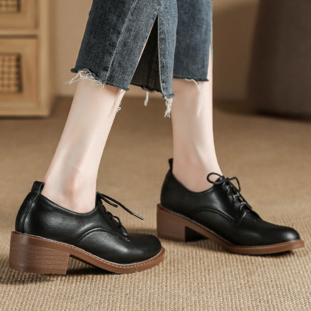Womens Casual Lace Up Oxford Shoes Middle Heels
