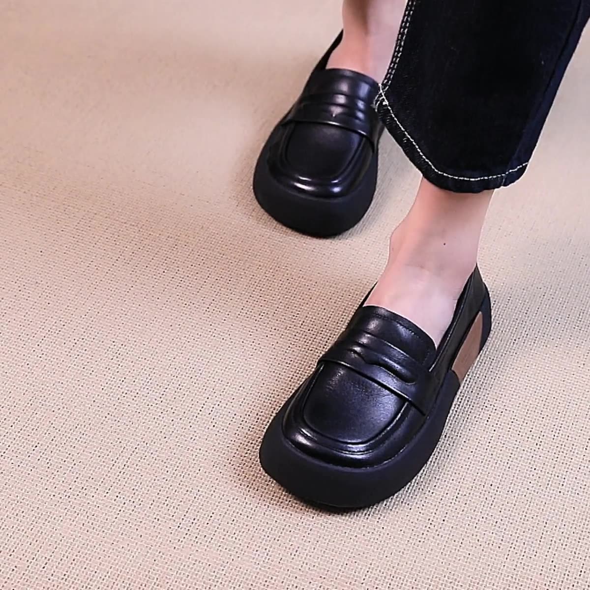 Women's Casual Platform Loafers, Retro Style Flats Soft Thick-soled Walking Shoes