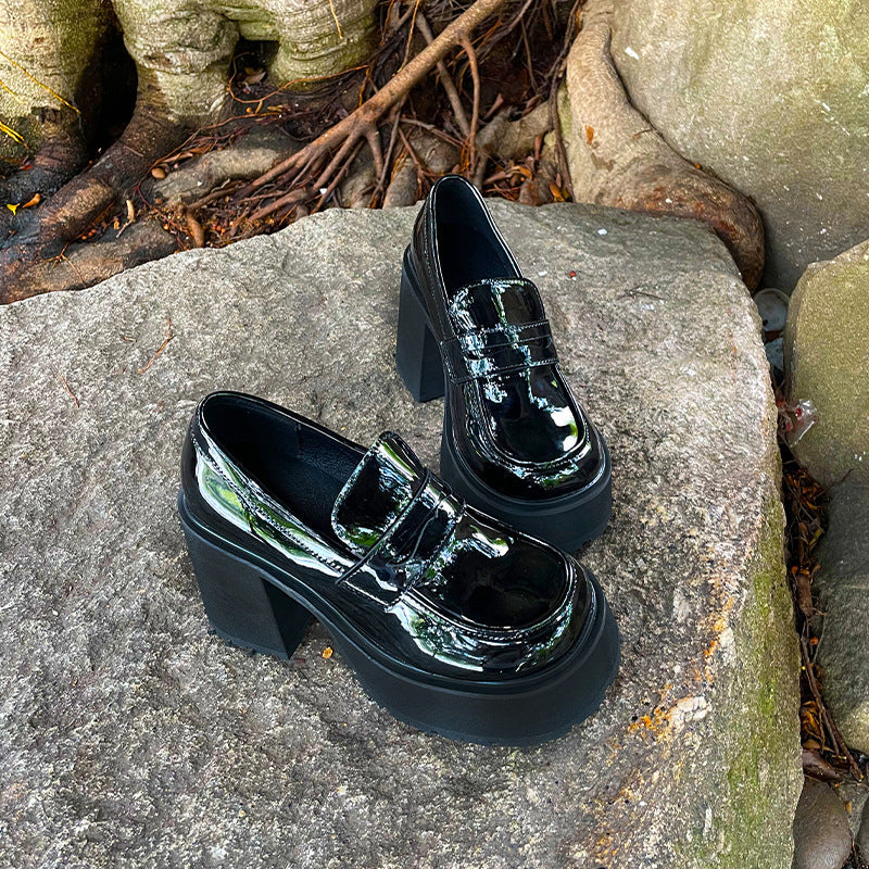Heeled loafers feature in round toe.platform.patent leather.pull on.3.94" chunky high heel to show your beautiful ankle curve and make your leg looks slender.