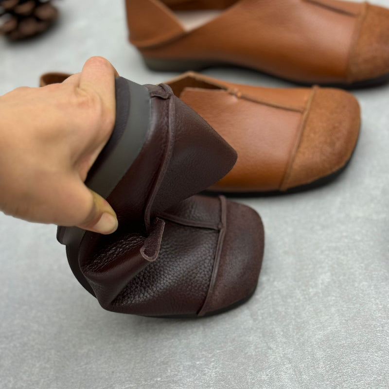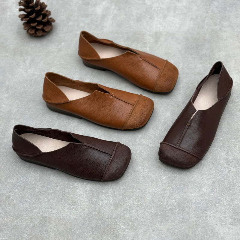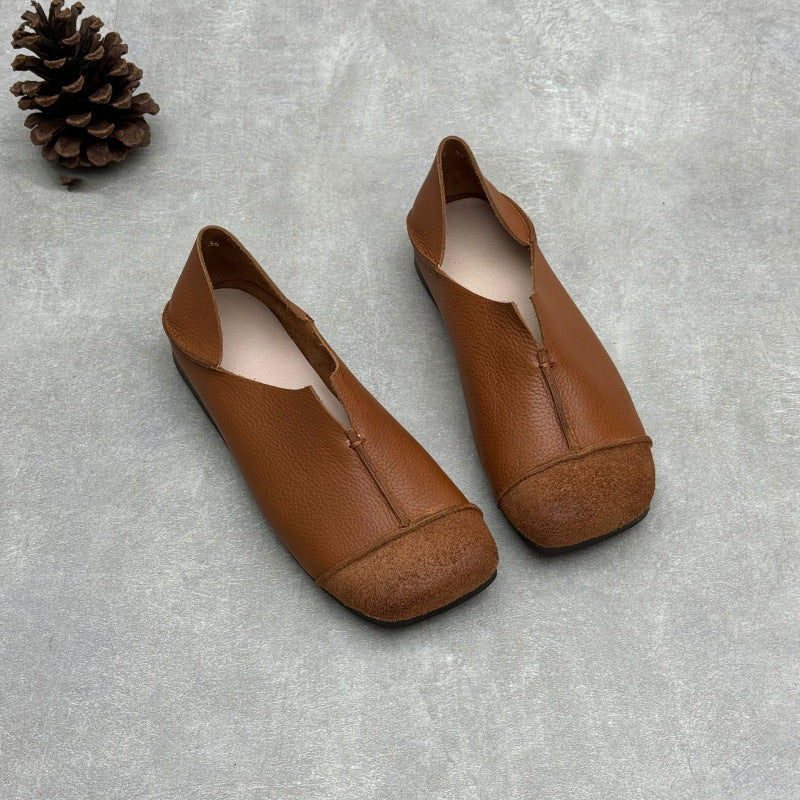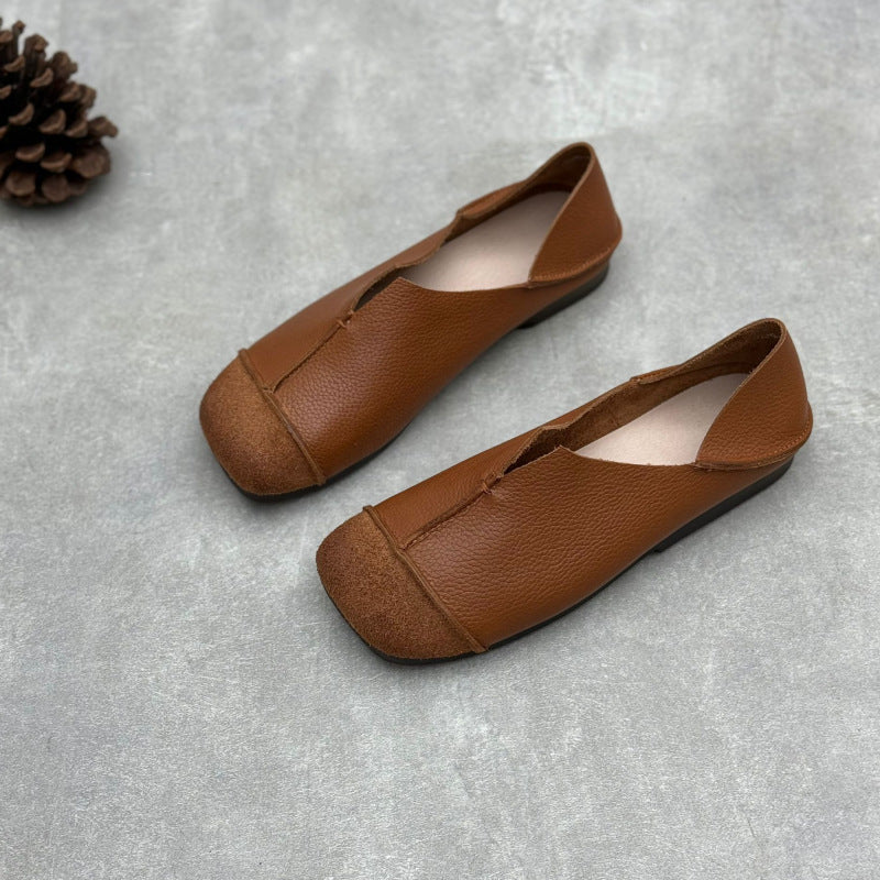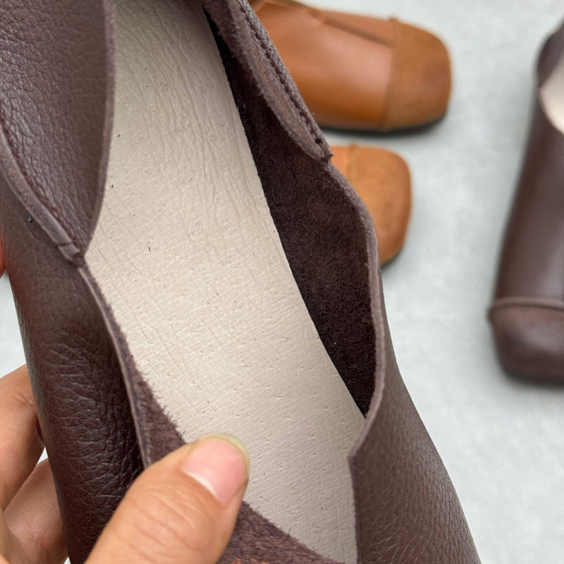 Women's Handmade Cowhide Flat Retro Square Toe Literary Casual Shoes