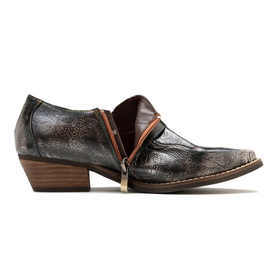 Womens Floral Embossed Leather Zipper Belt Buckle Oxford Shoes