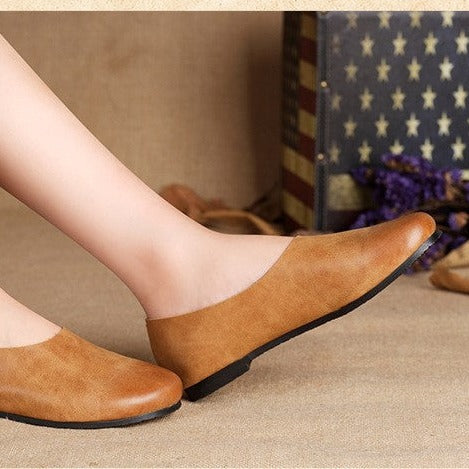 Womens Handmade Soft Shoes Flat Shoes Retro Leather Shoes