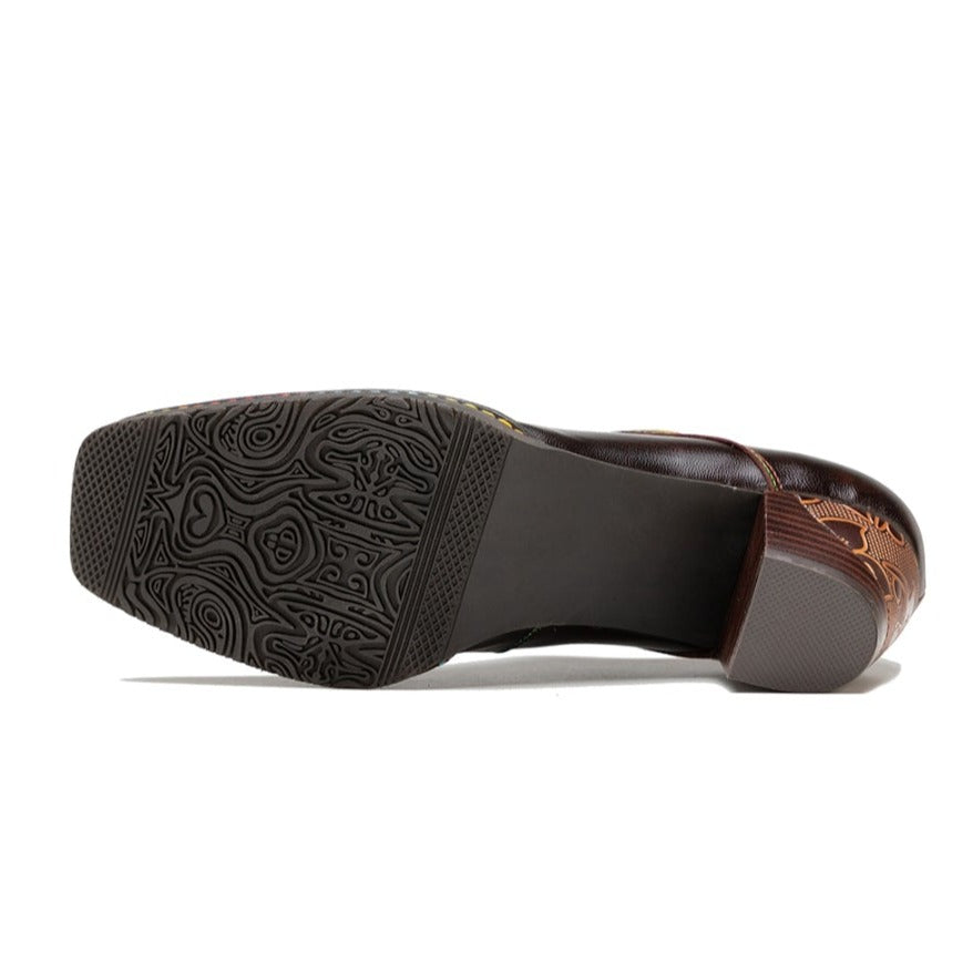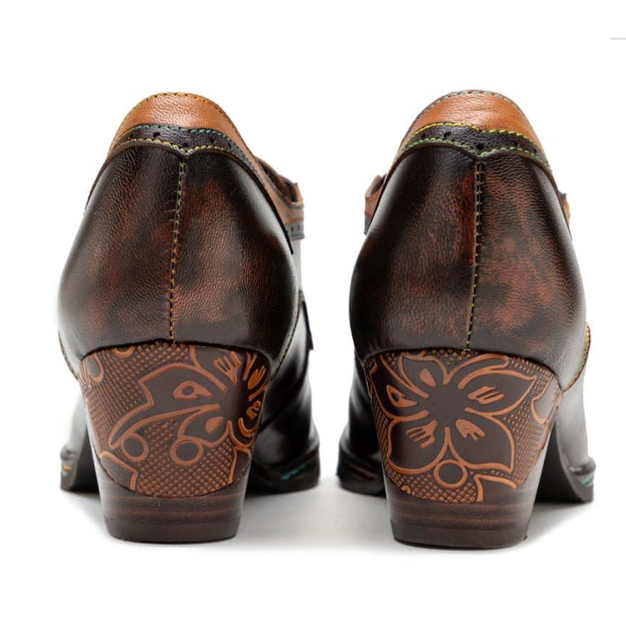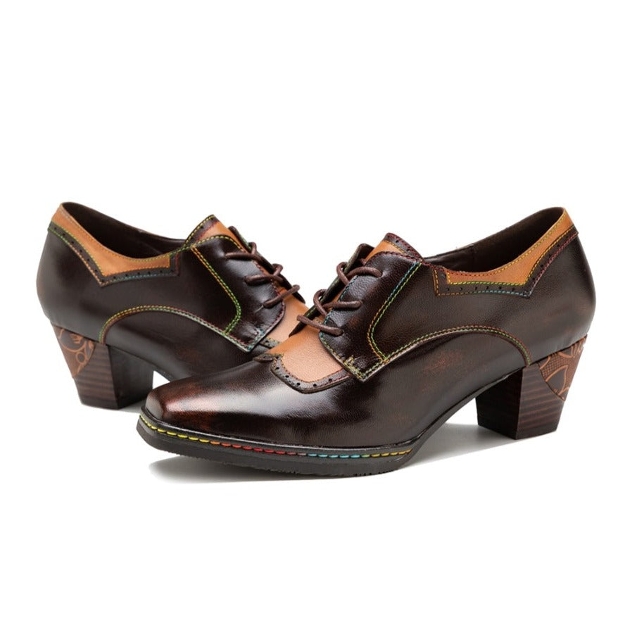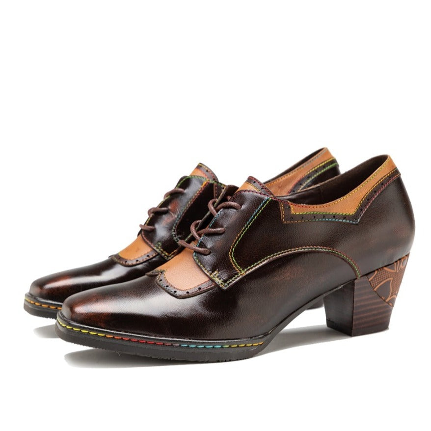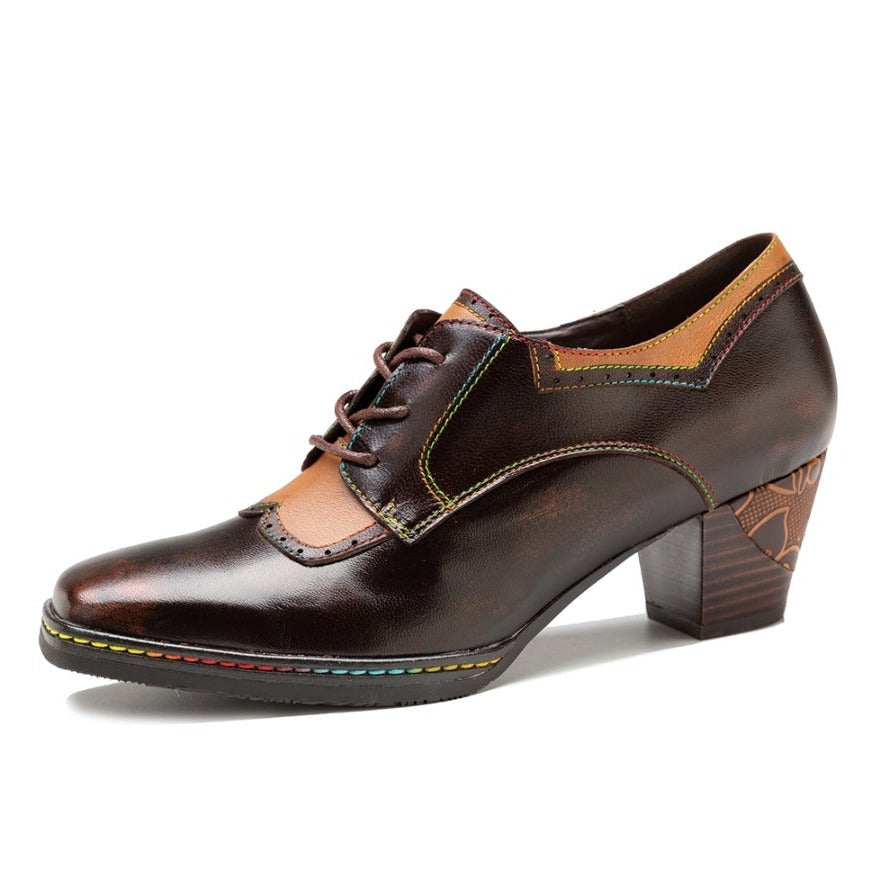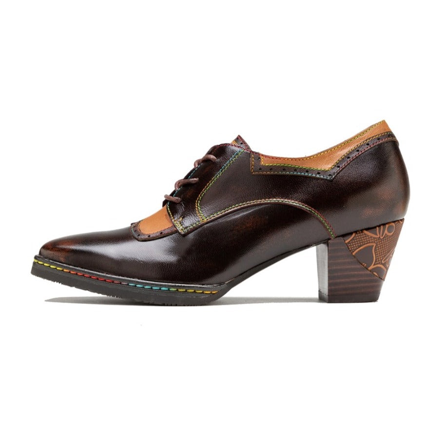 Womens Leather Embossed Low Heel Oxford Shoes