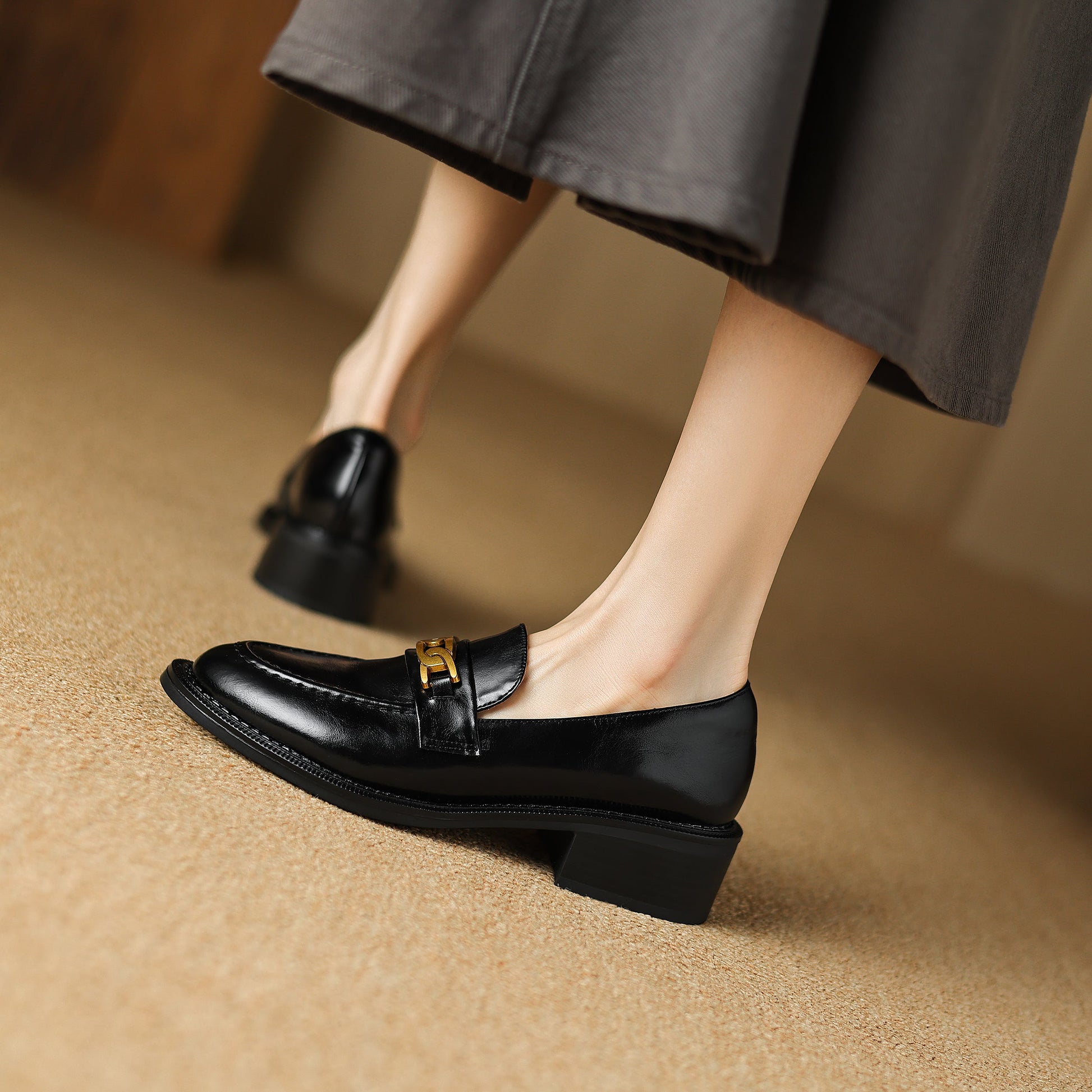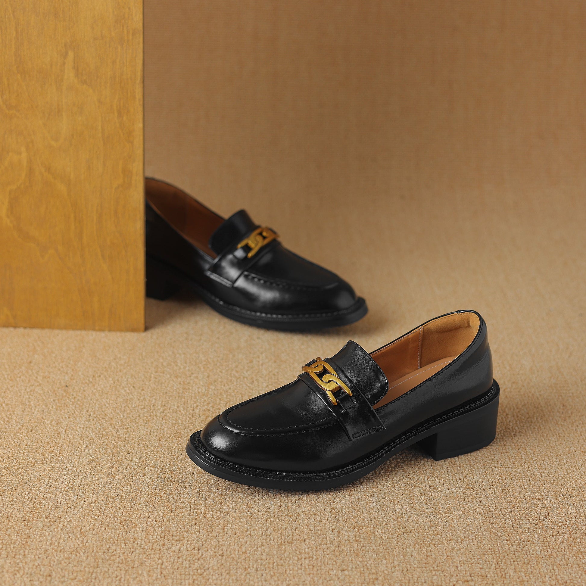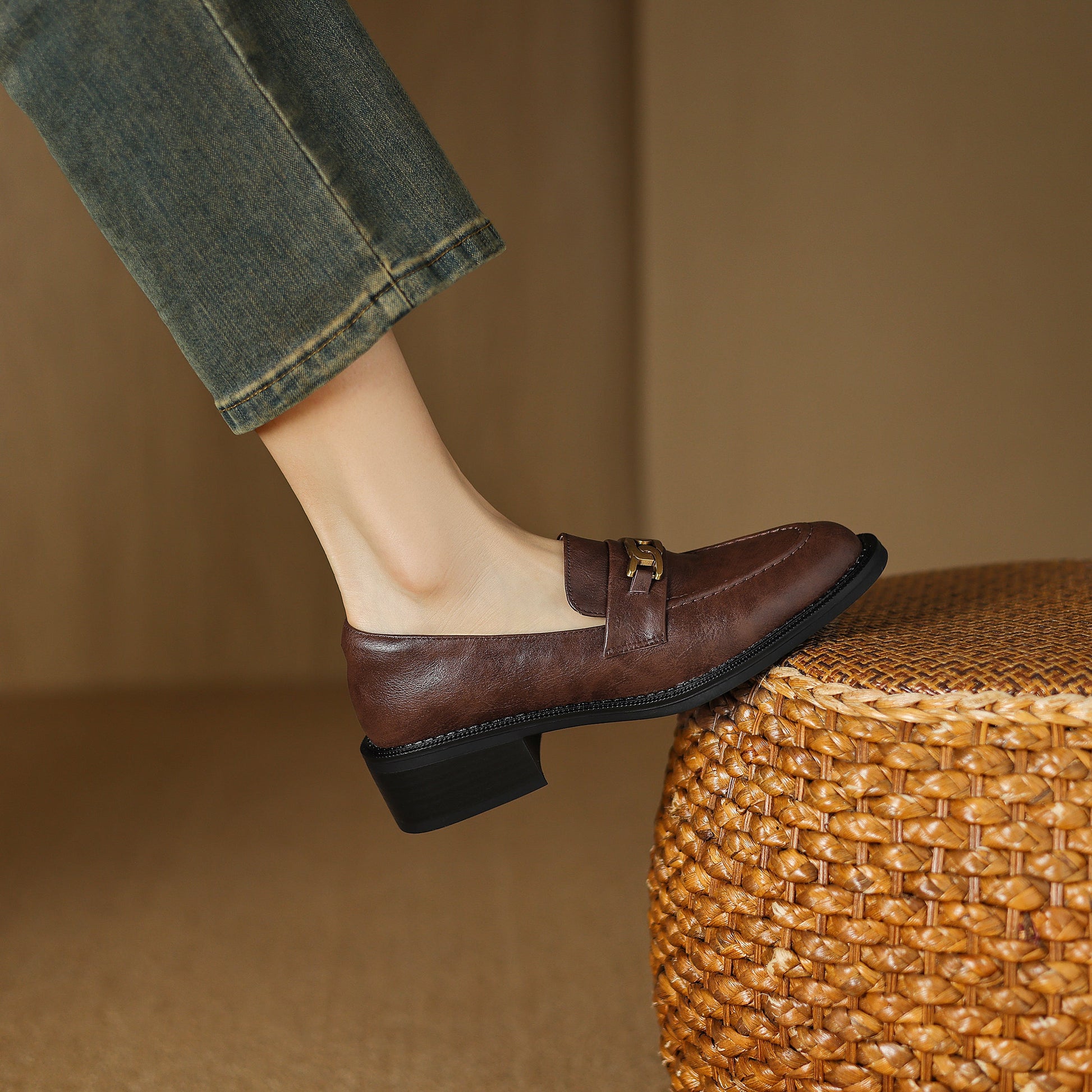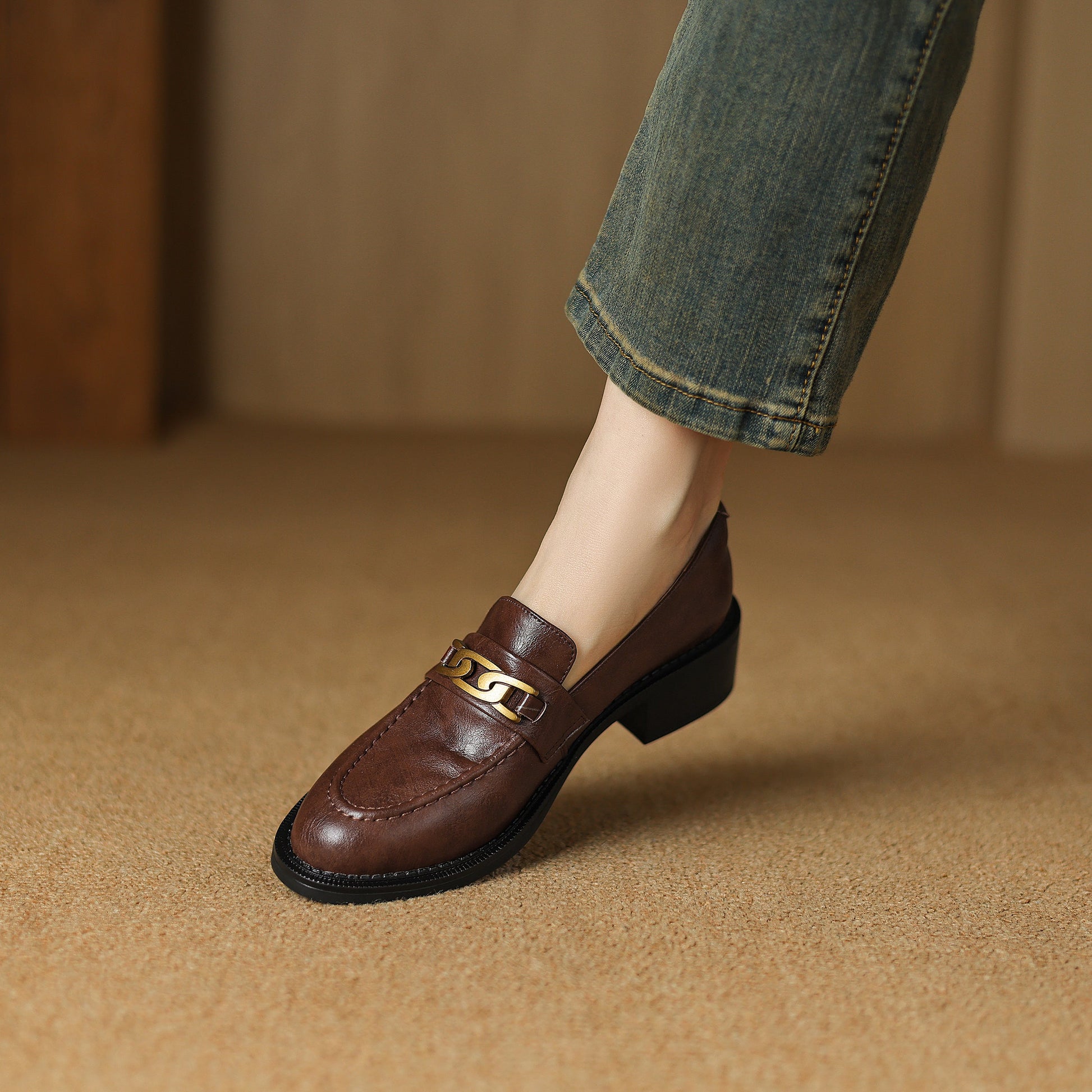The UrbanGrace Chainette is a chic and modern women's shoe designed for those who appreciate both style and comfort. Crafted with premium cowhide upper. a soft pigskin lining. and a luxurious sheepskin insole. this shoe offers exceptional breathability. The 4cm heel and durable TPR sole provide a perfect blend of elegance and practicality. while the round toe design ensures a comfortable fit. Accented with a stylish metal chain decoration. the UrbanGrace Chainette adds a touch of sophistication to any outfit. Available in versatile brown and black. this handmade shoe is perfect for everyday wear or special occasions. Step into effortless elegance with the UrbanGrace Chainette.