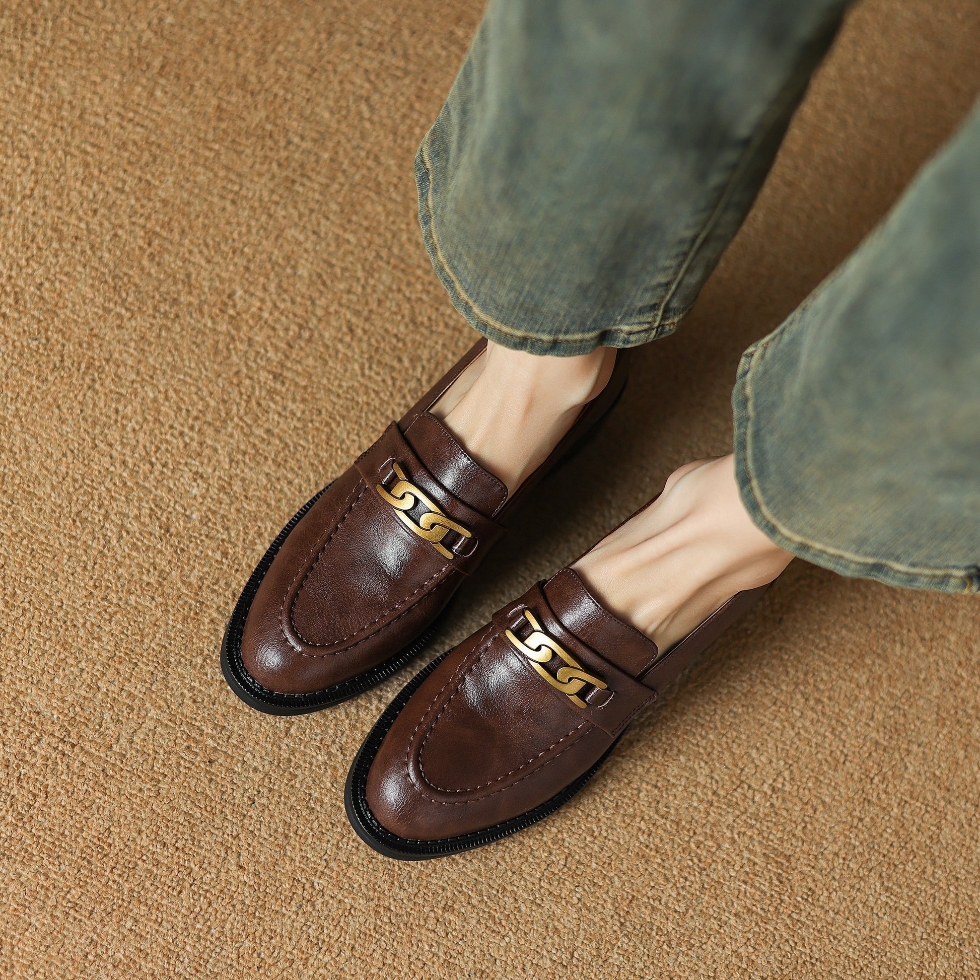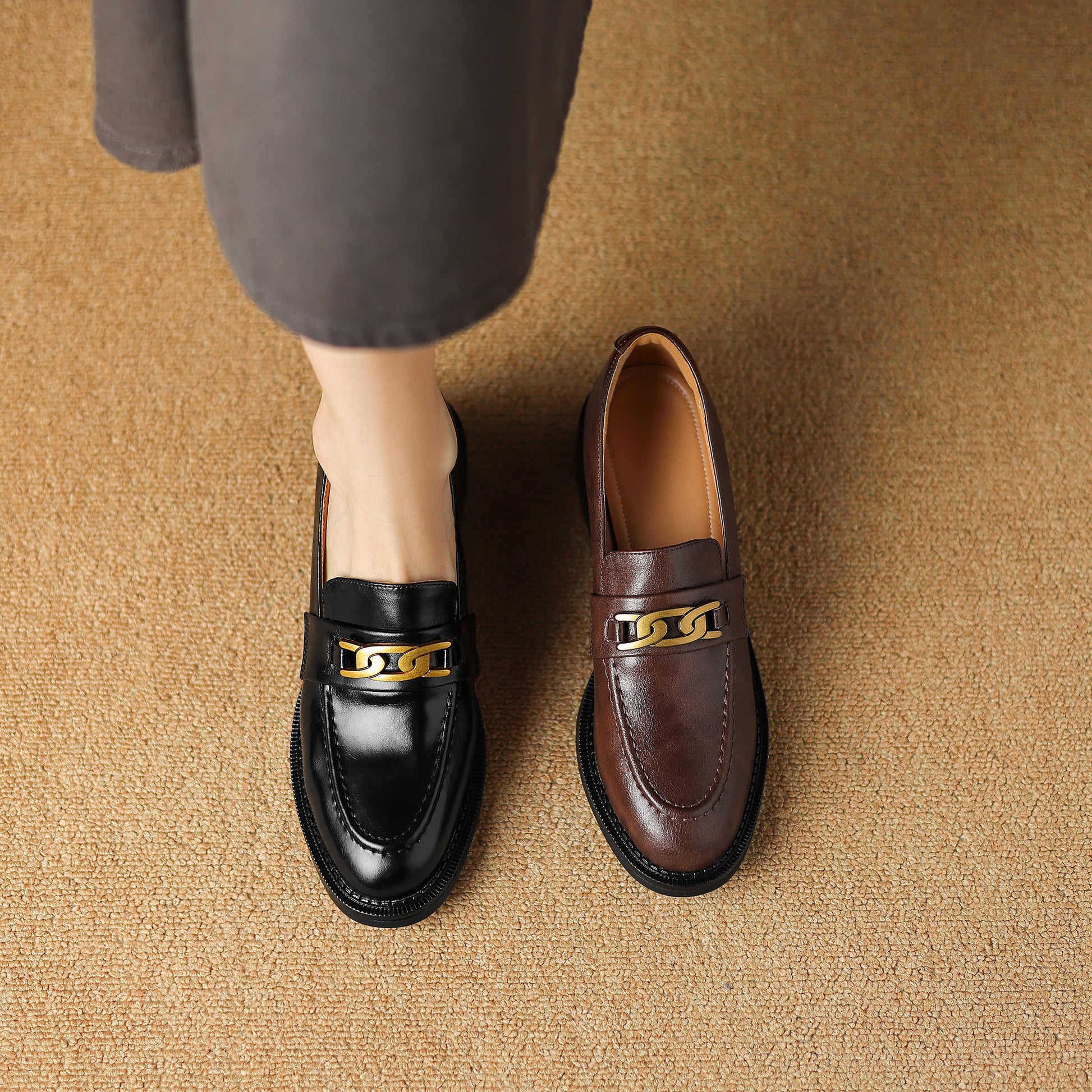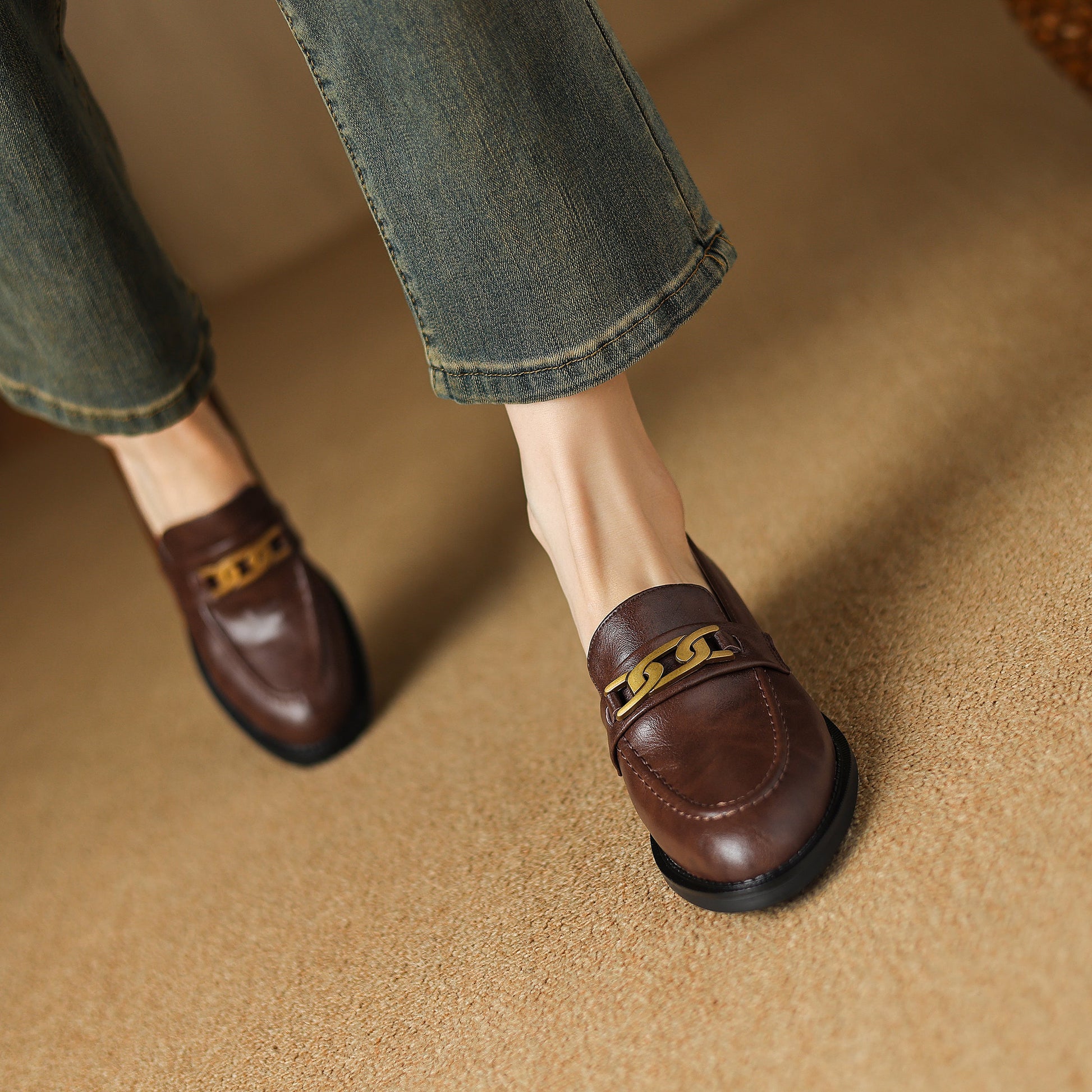 Women's Leather Handmade Loafers UrbanGrace Chainette