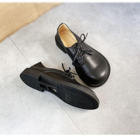 Step up your shoe game with these Womens Leather Lace-up Loafers! These flats feature a wide toe box. providing comfort and style all day long. The lace-up design adds a trendy touch to these classic flats. Ideal for any occasion. these shoes will elevate any outfit.