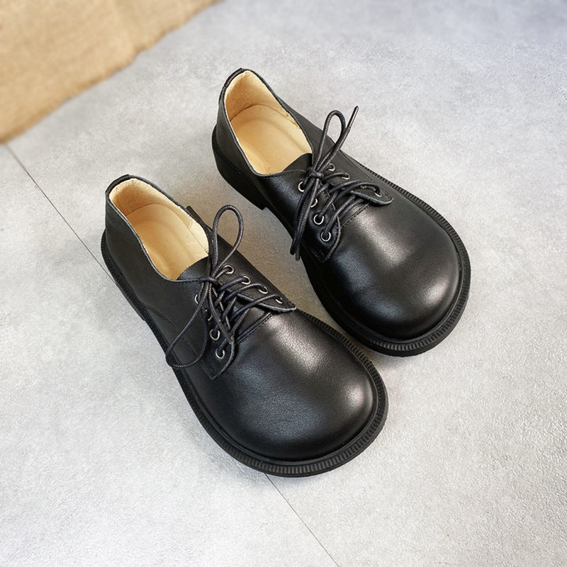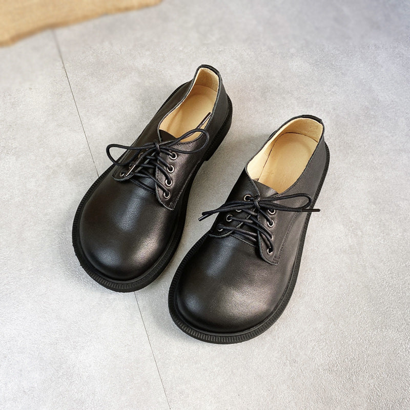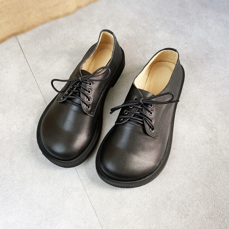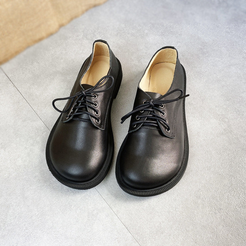 Womens Leather Lace-up Loafers Flats Wide Toe Box Shoes