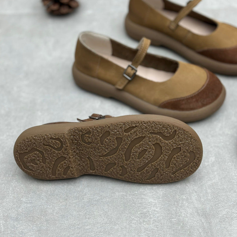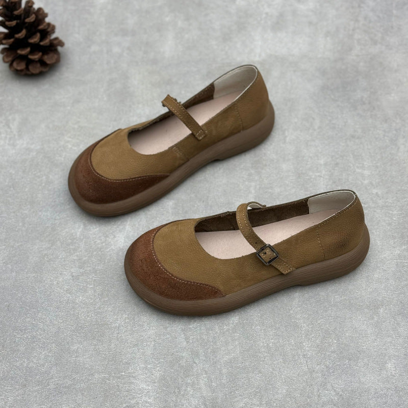 Women's Handmade Leather Patchwork Flat Mary Jane Shoes