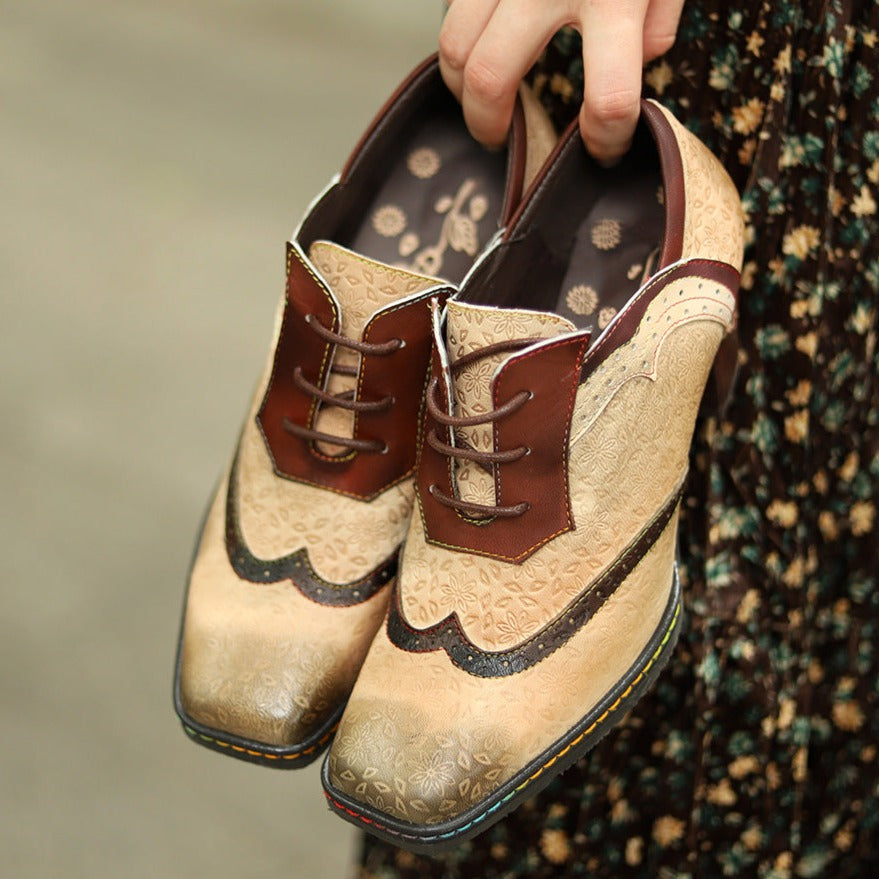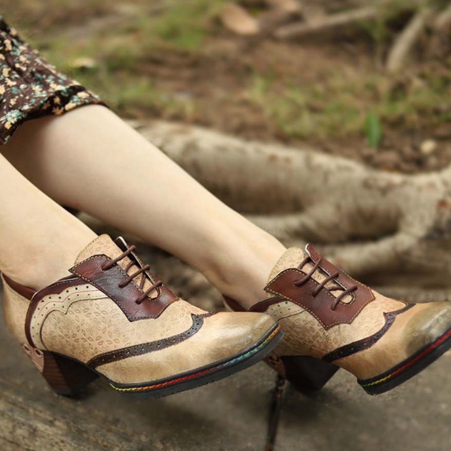 Womens Oxford Shoes Handmade Leather Old Retro Style Brogue Heels