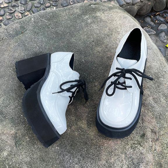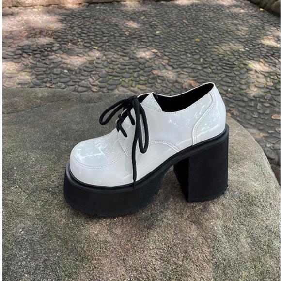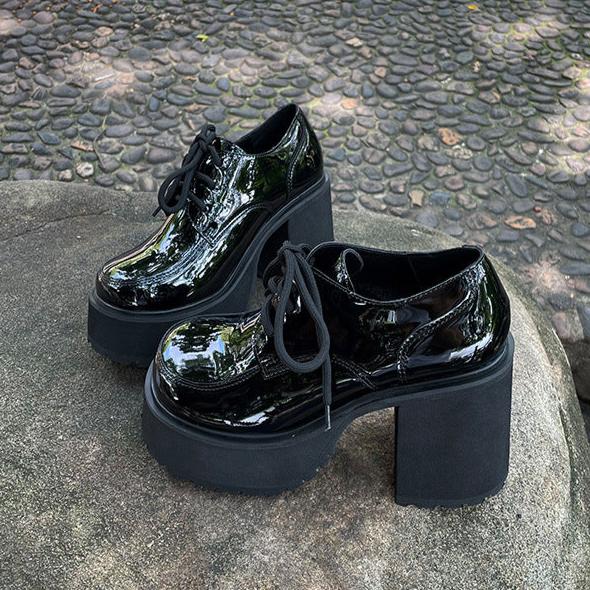 Oxford high heels feature in round toe.platform.patent leather.lace up.3.94" chunky high heel to show your beautiful ankle curve and make your leg looks slender.
