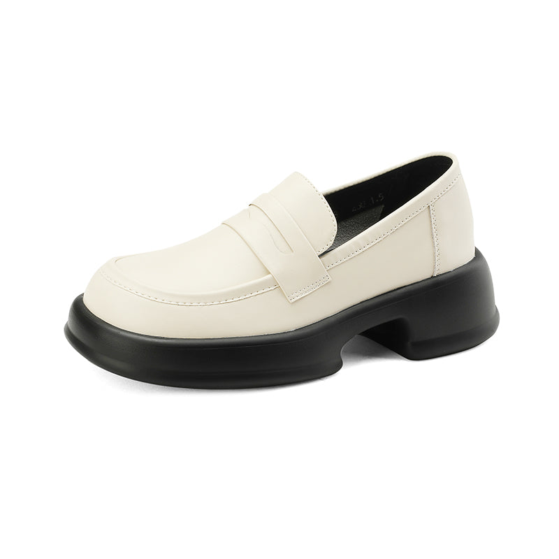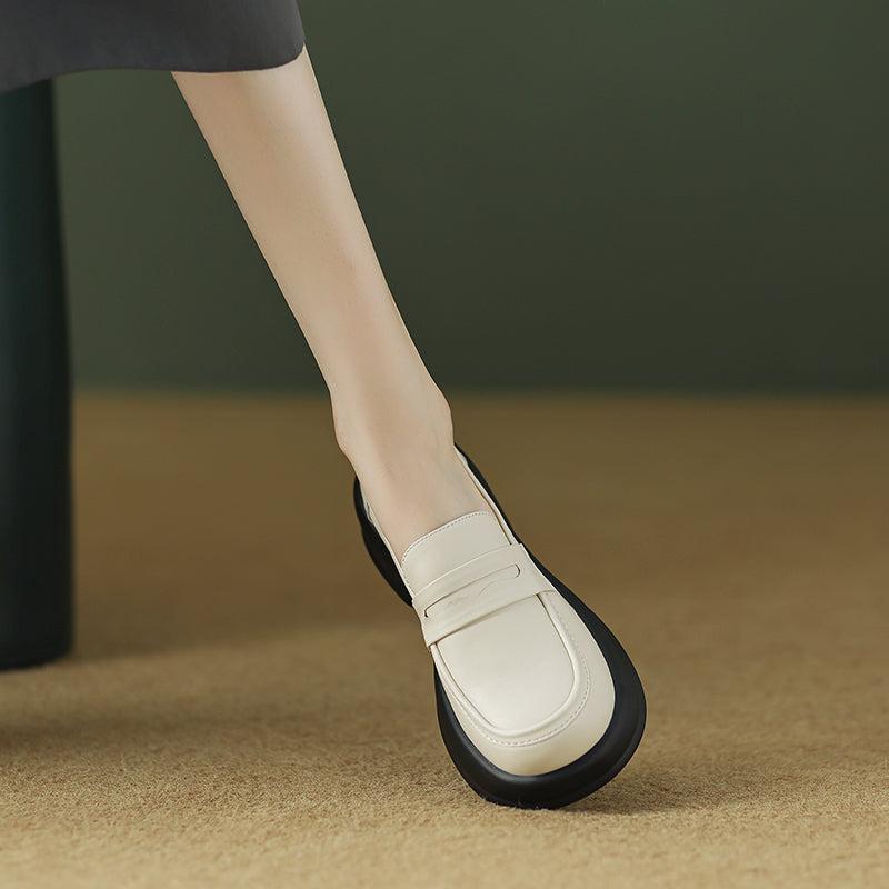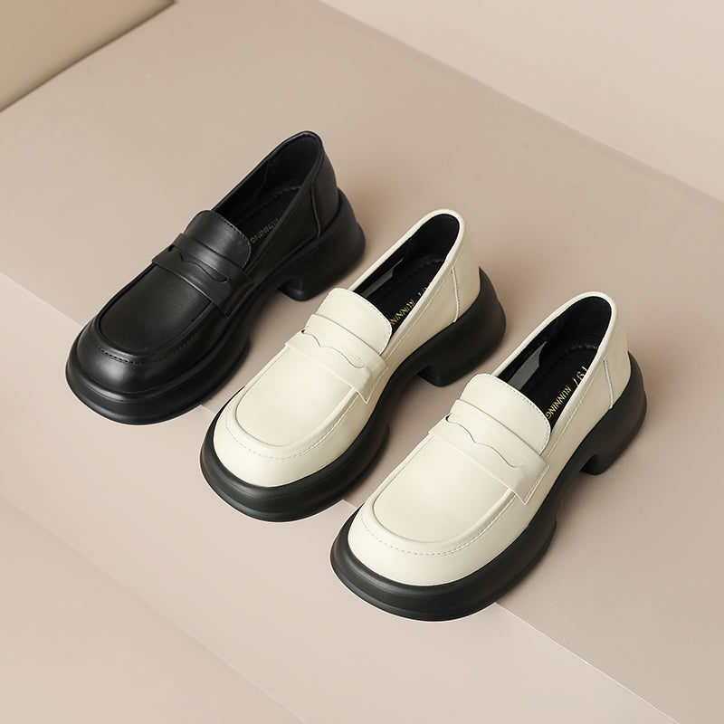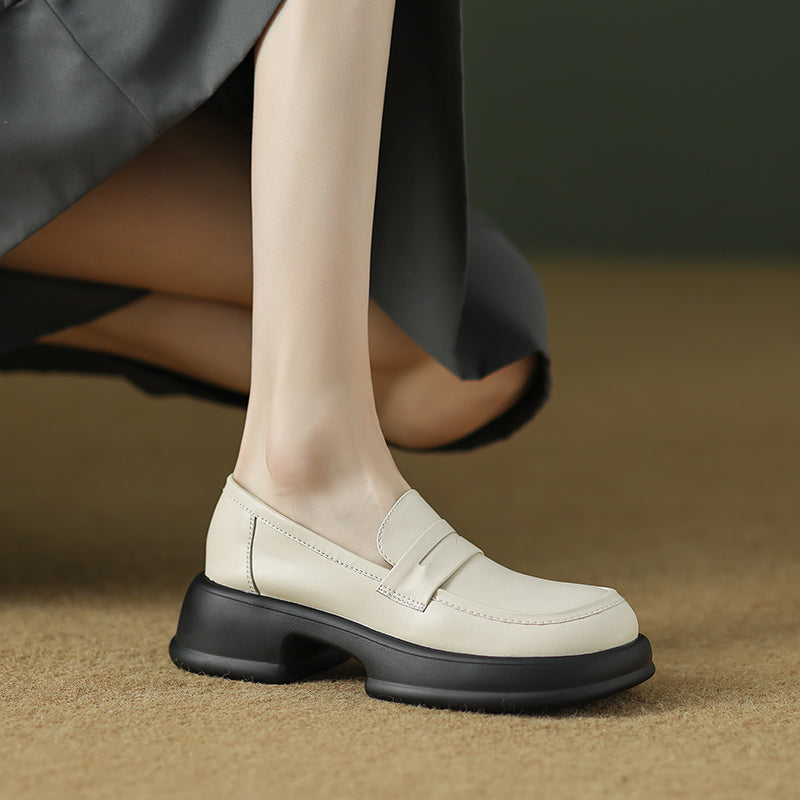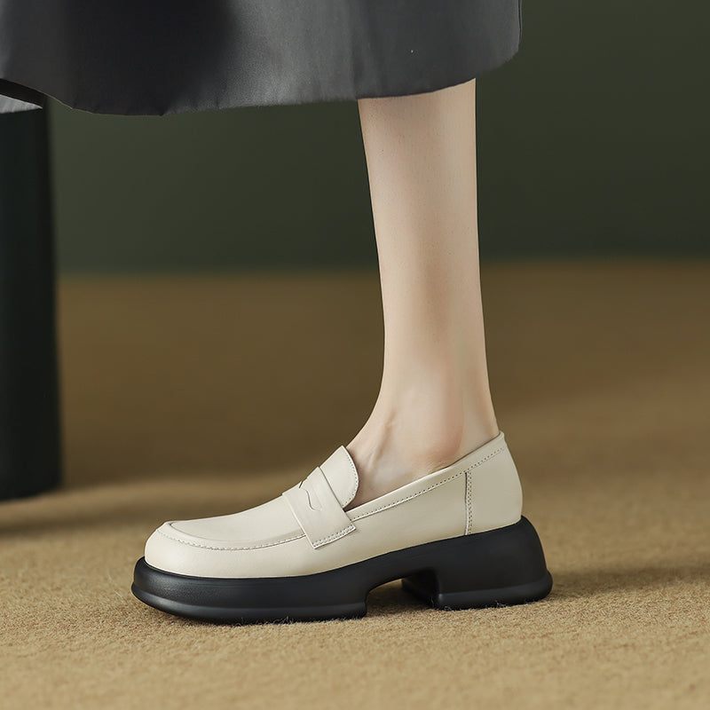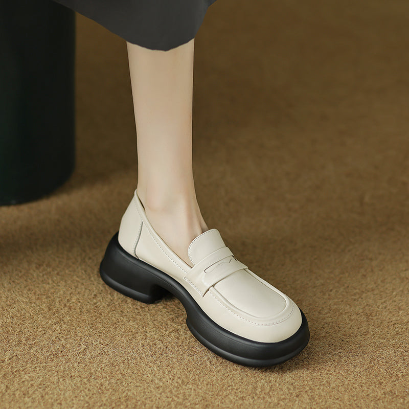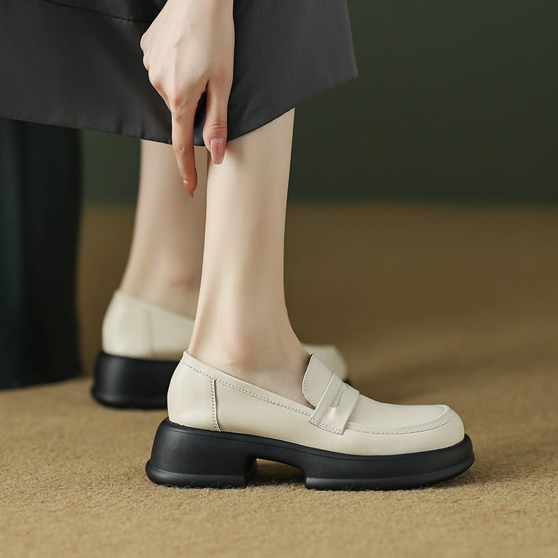 Womens Platform Leather Round Toe Block Heels Loafers Shoes
