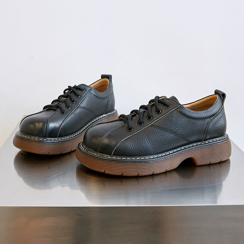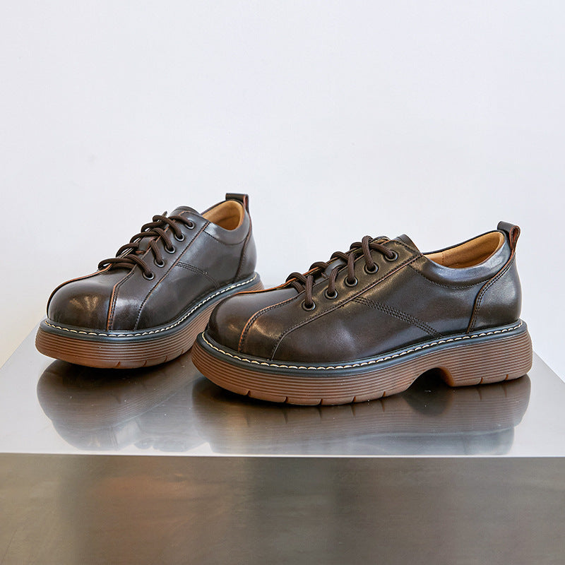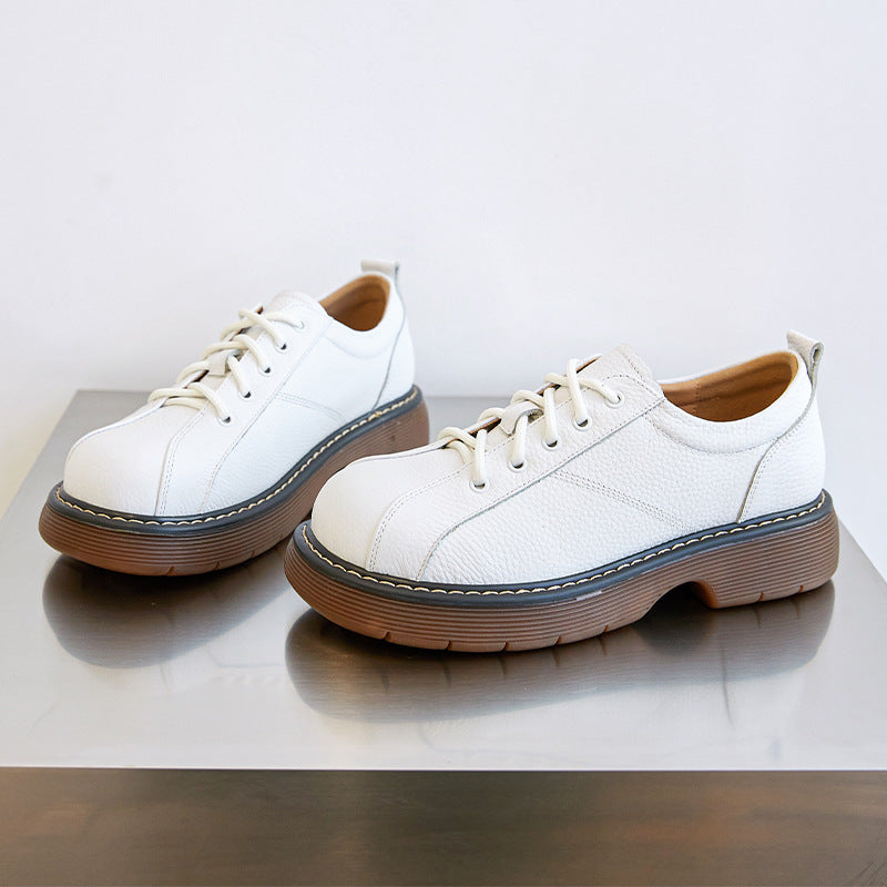 Womens Platform Oxfords Shoes Lace Up Flats Leather Shoes