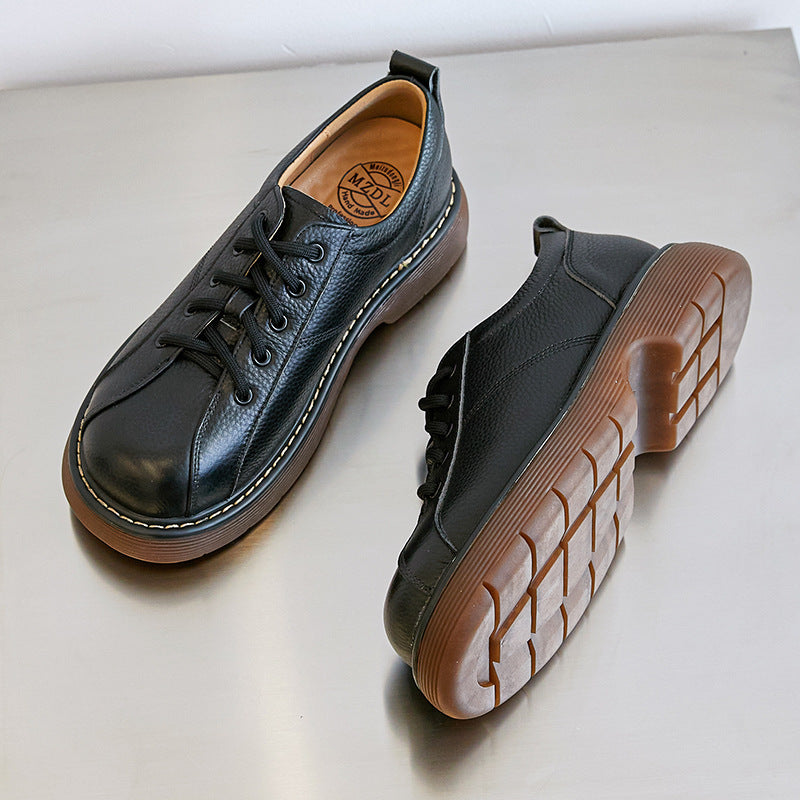 Introducing these sleek and elegant British-style shoes that exude sophistication and modernity. Made from high-quality leather. these shoes feature a streamlined design with a slightly rounded toe box and a sturdy sole that provides excellent support and grip. With impeccable craftsmanship and attention to detail. these shoes are a testament to the enduring appeal of British style.