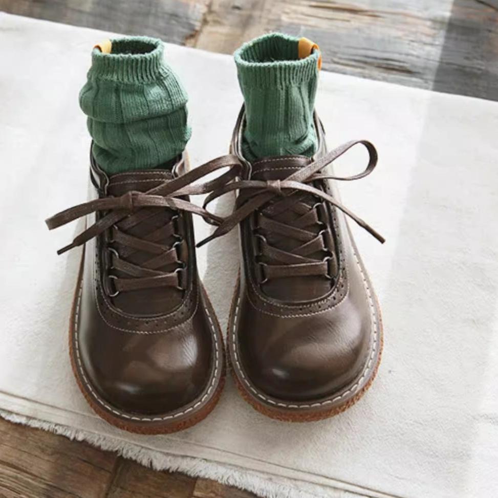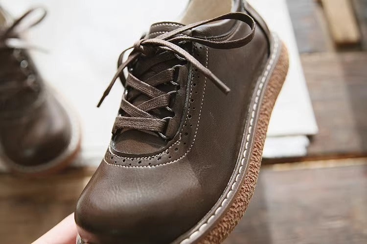 Women's Retro Lace-Up British Leather Shoes Mori Girl Style