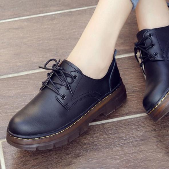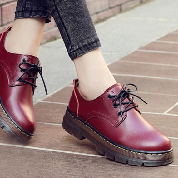 Women's Shoes Chunky Bottom Lace Up Soft Leather Loafers
