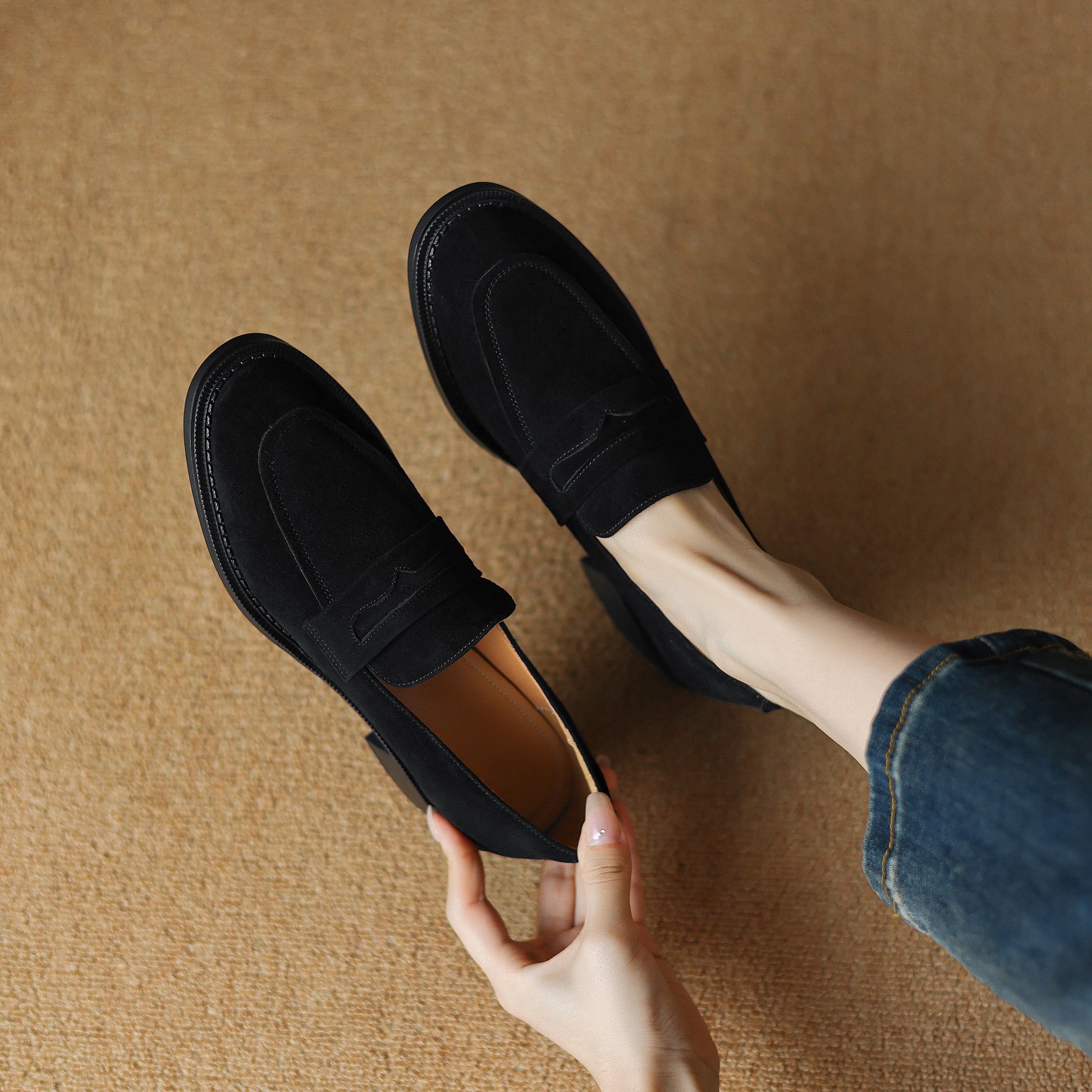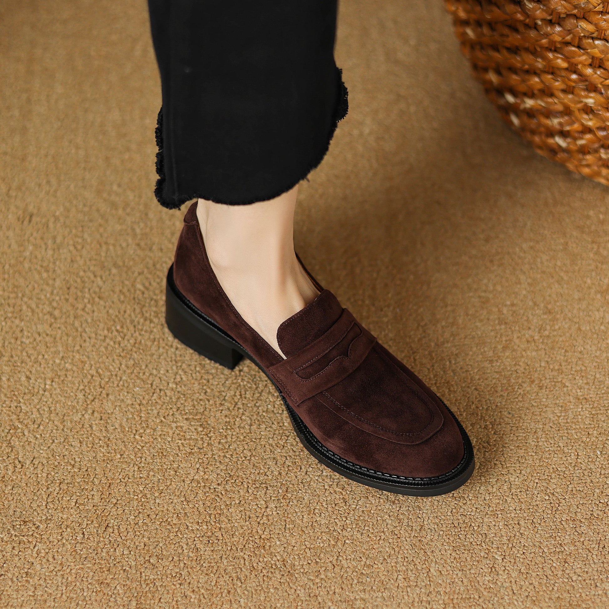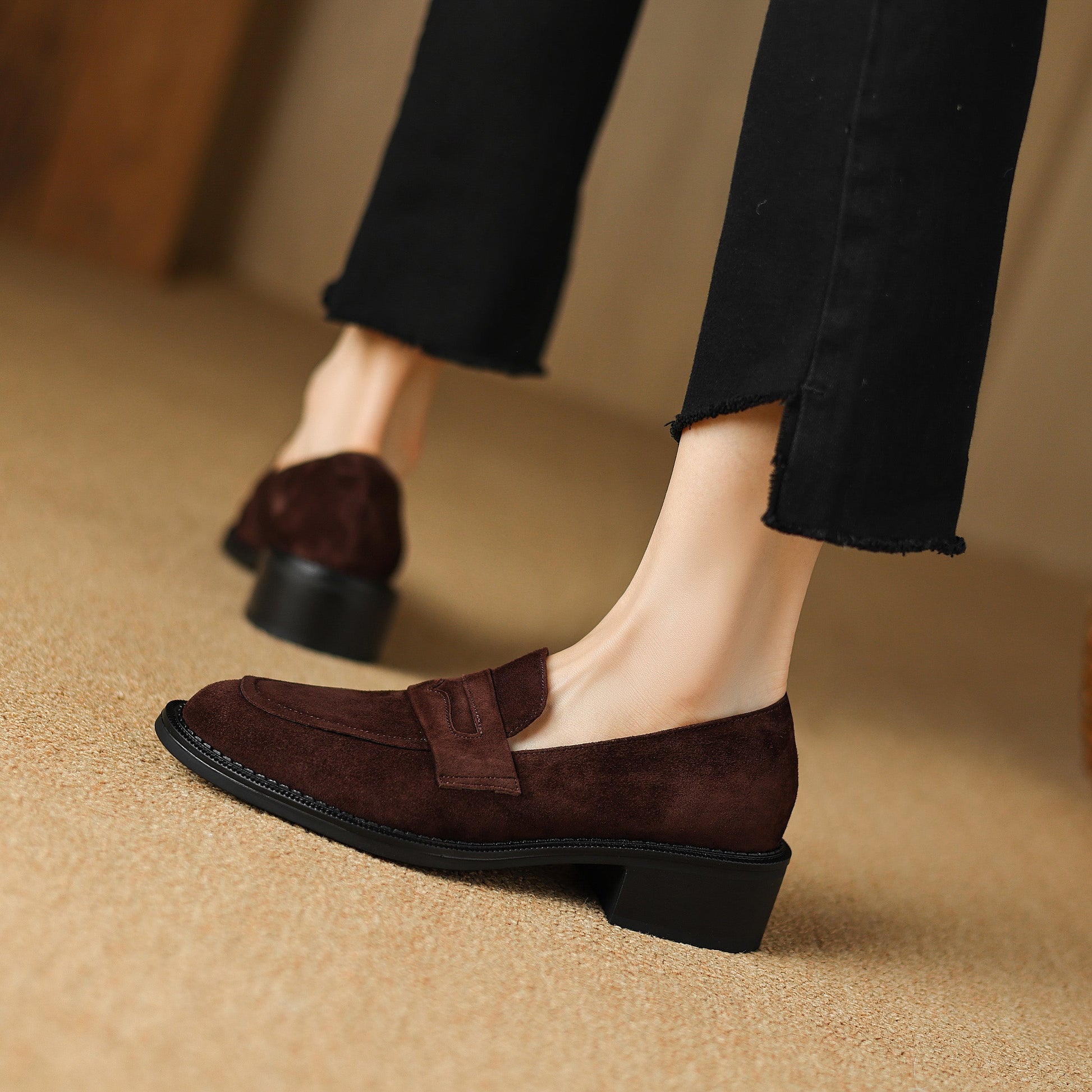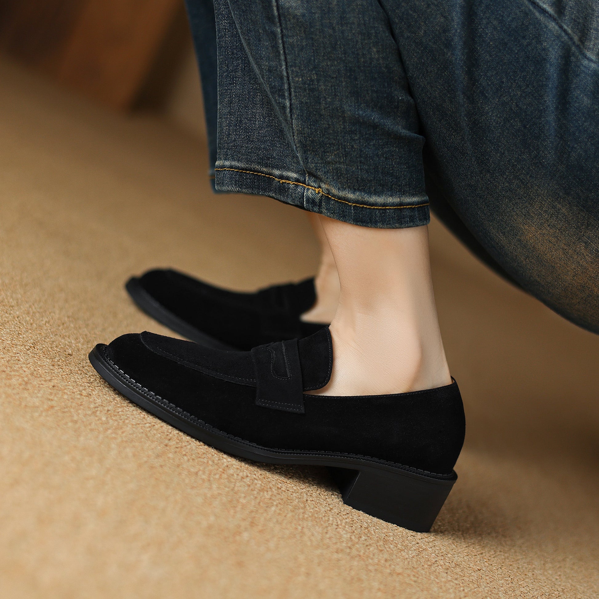 Women's Suede Handmade Chunky Heeled Loafers