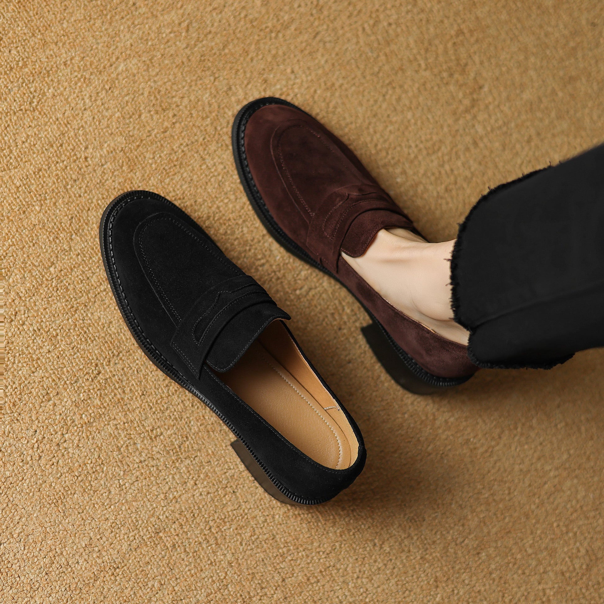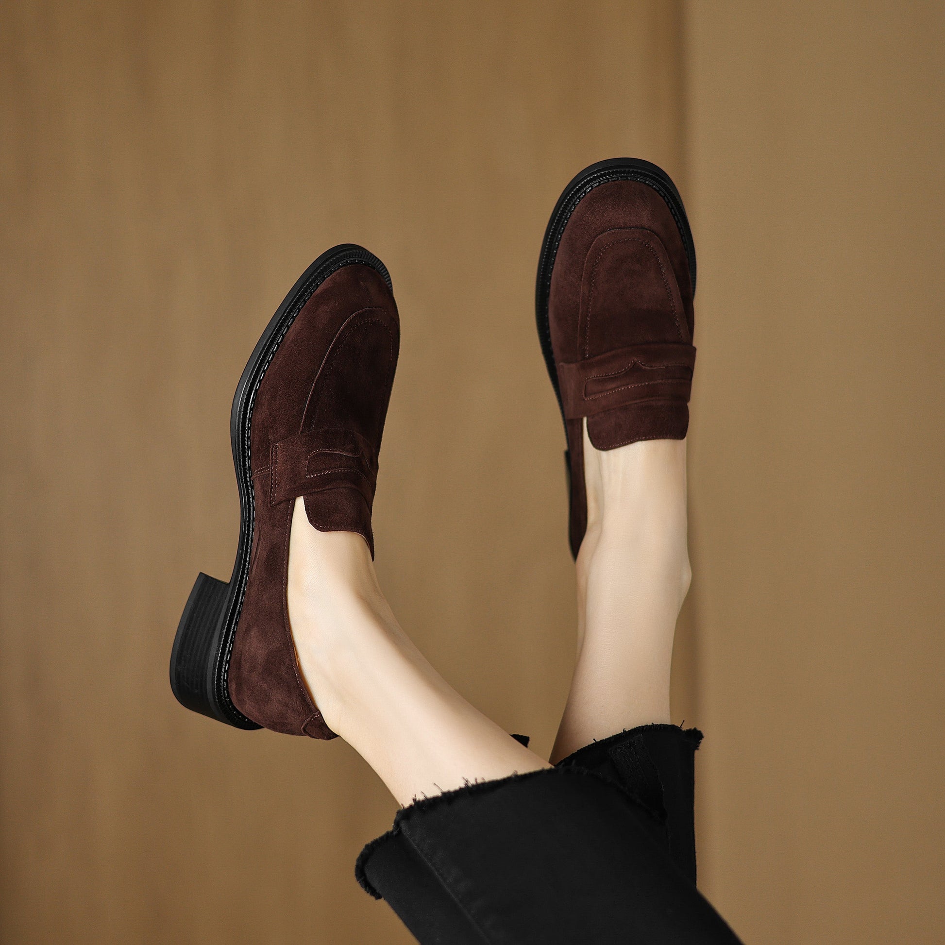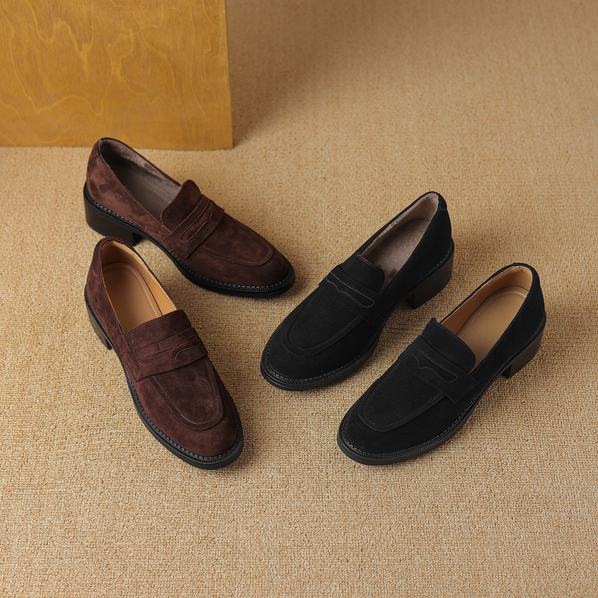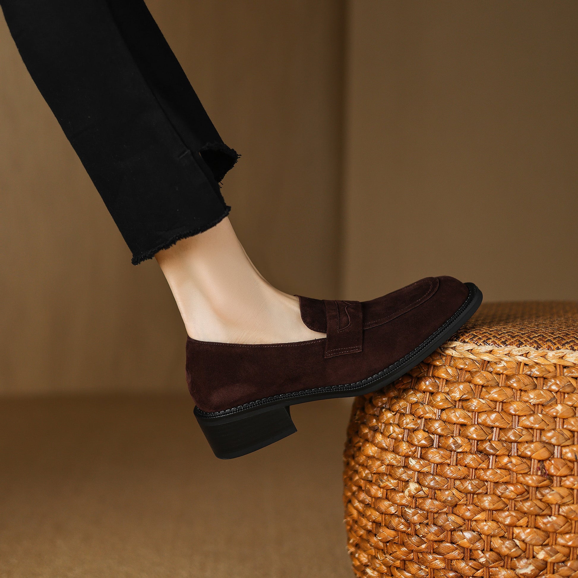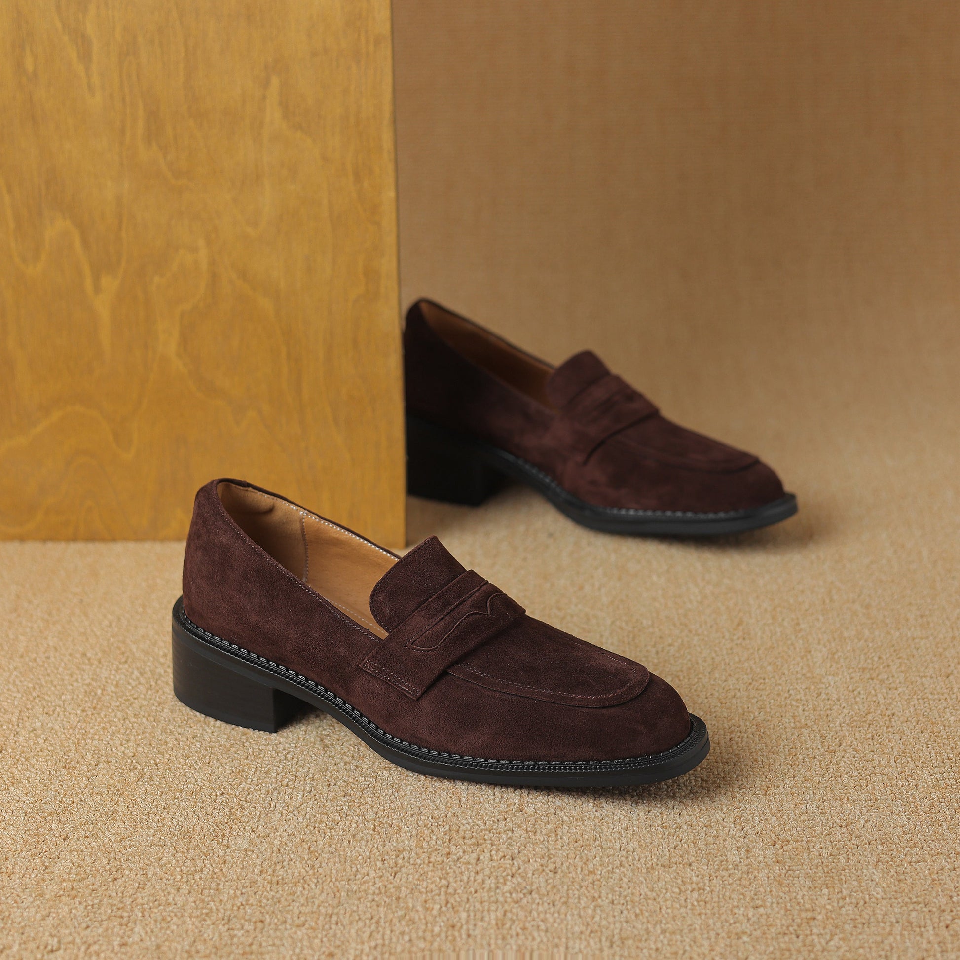 Women's Suede Handmade Chunky Heeled Loafers