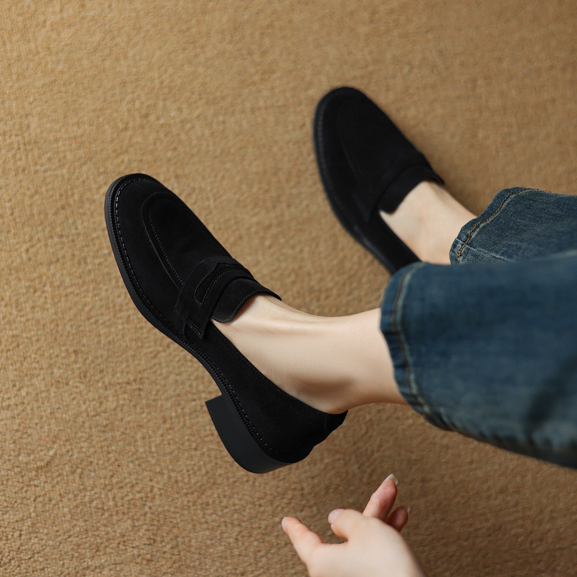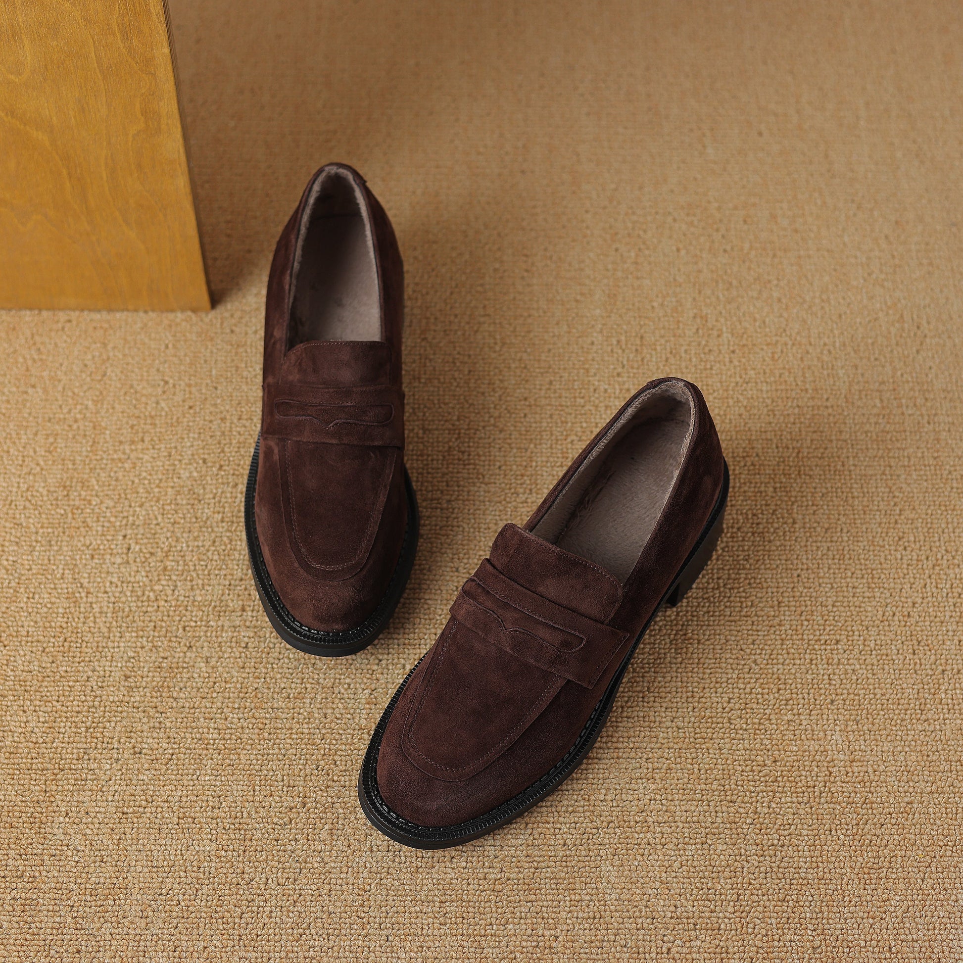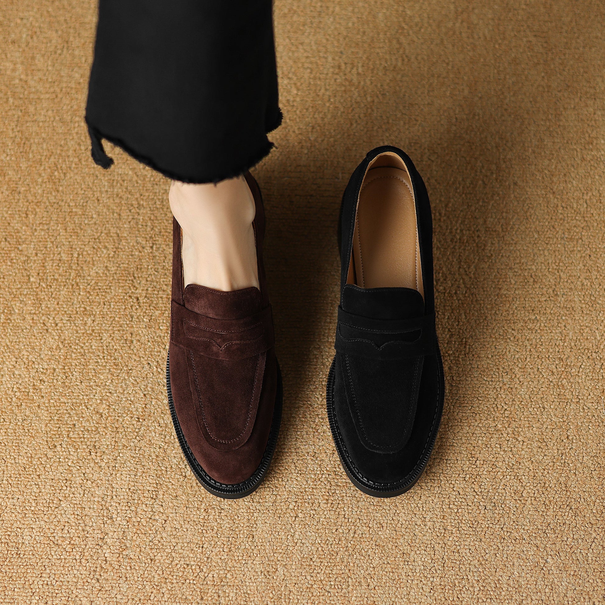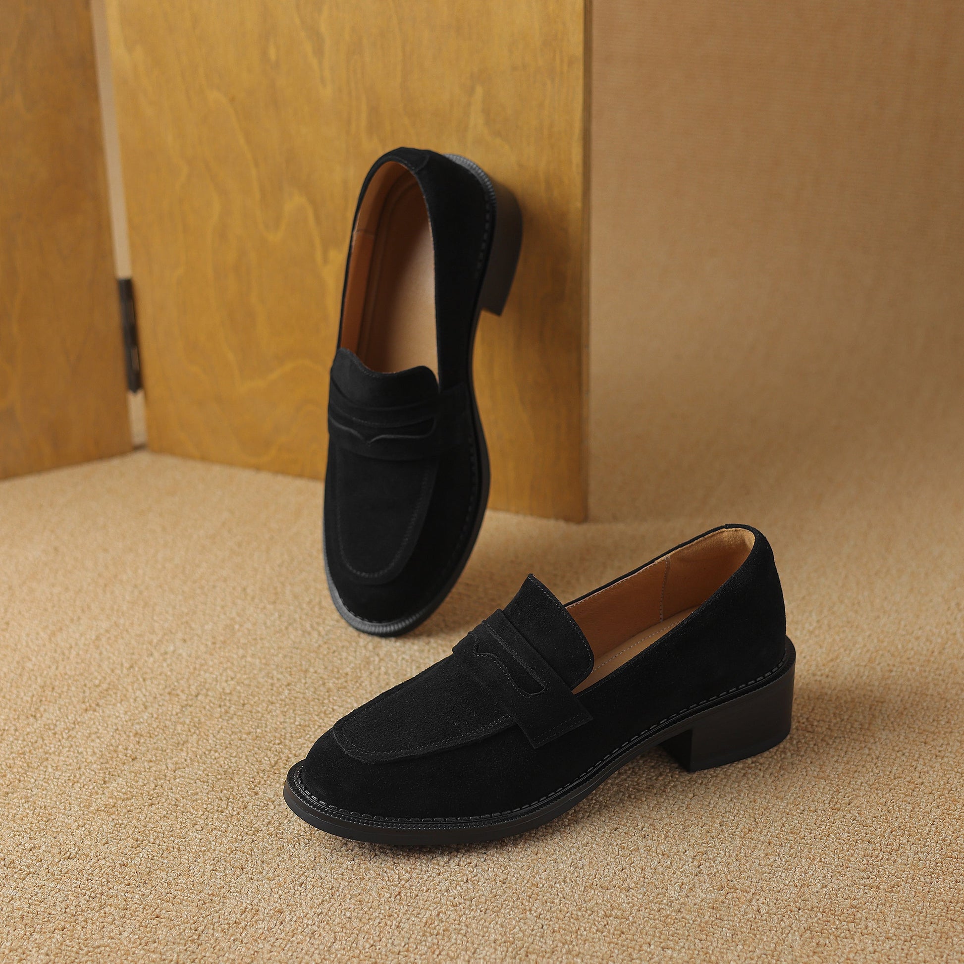 Women's Suede Handmade Chunky Heeled Loafers