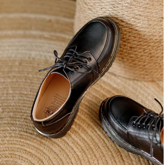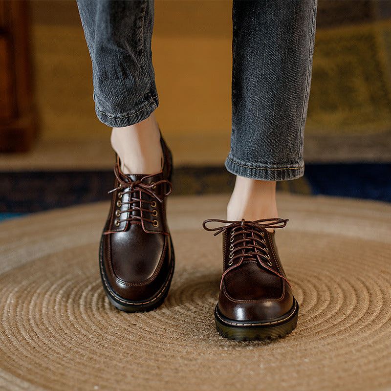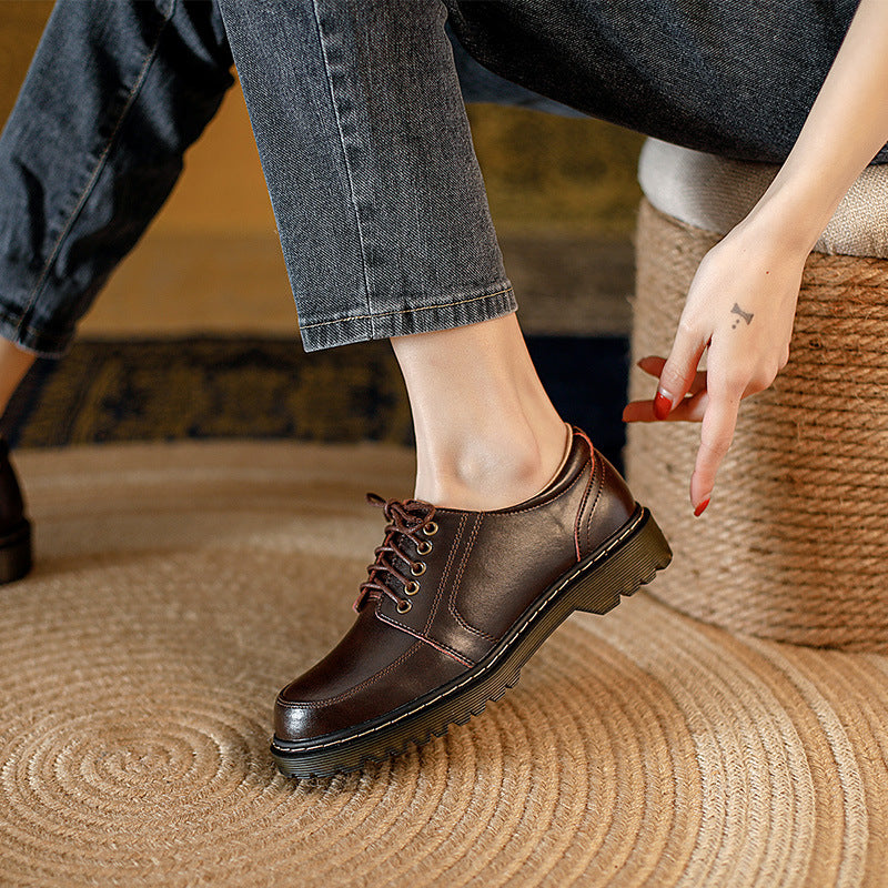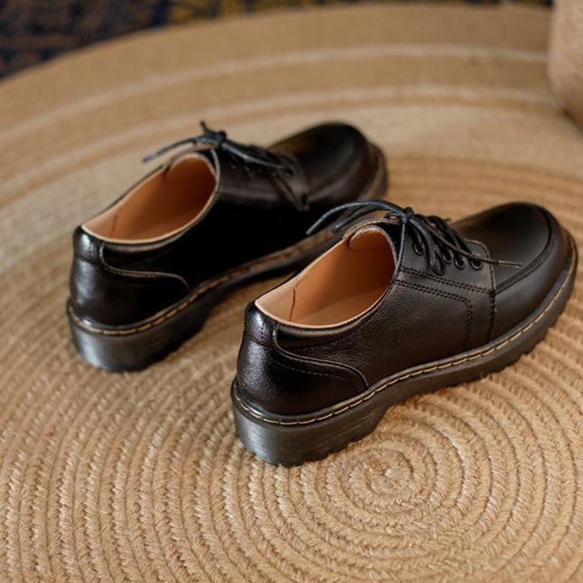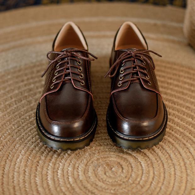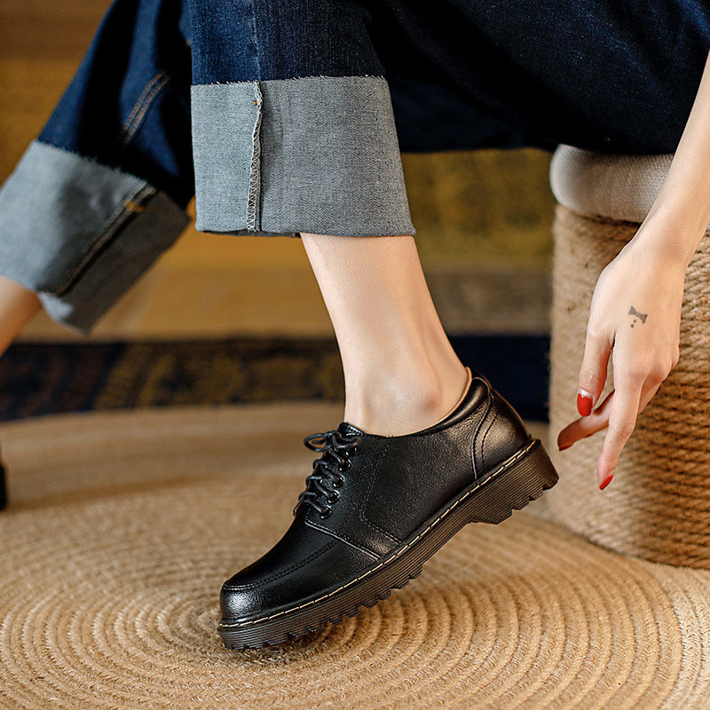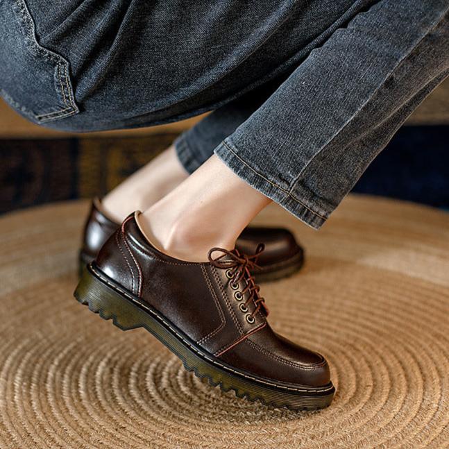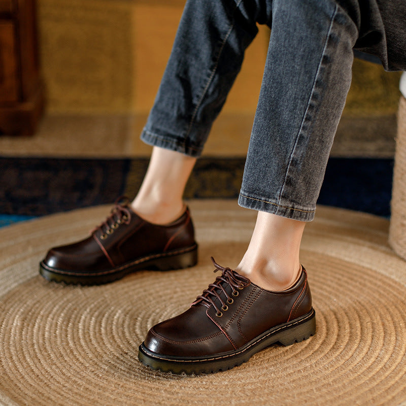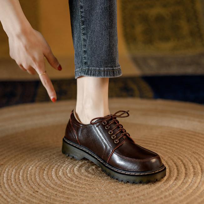 Womens Vintage Classic Style Lace Up Comfortable Round Toe Loafers Flat Shoes