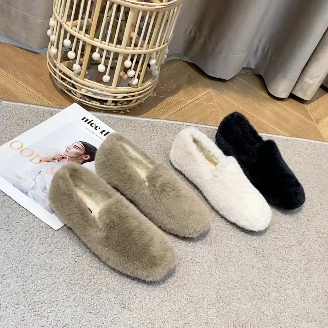 Women's Warm & Comfortable Plush Fur Loafers Shoes. Round Toe. Versatile. Flat Heel. Soft Bottom. Driving Shoes. Winter