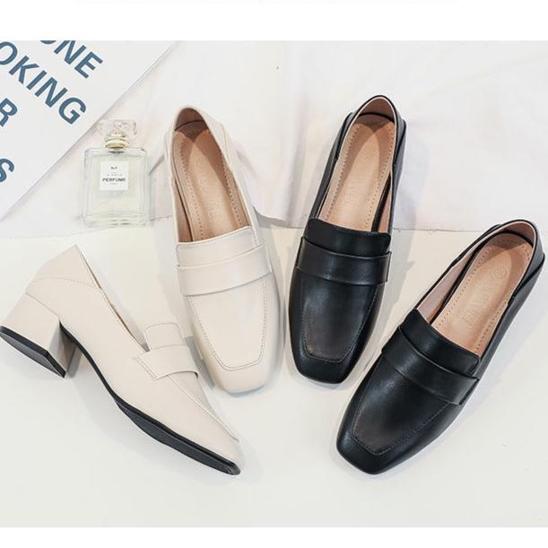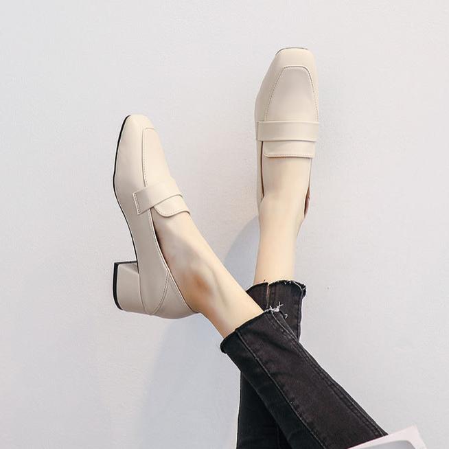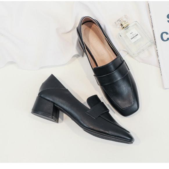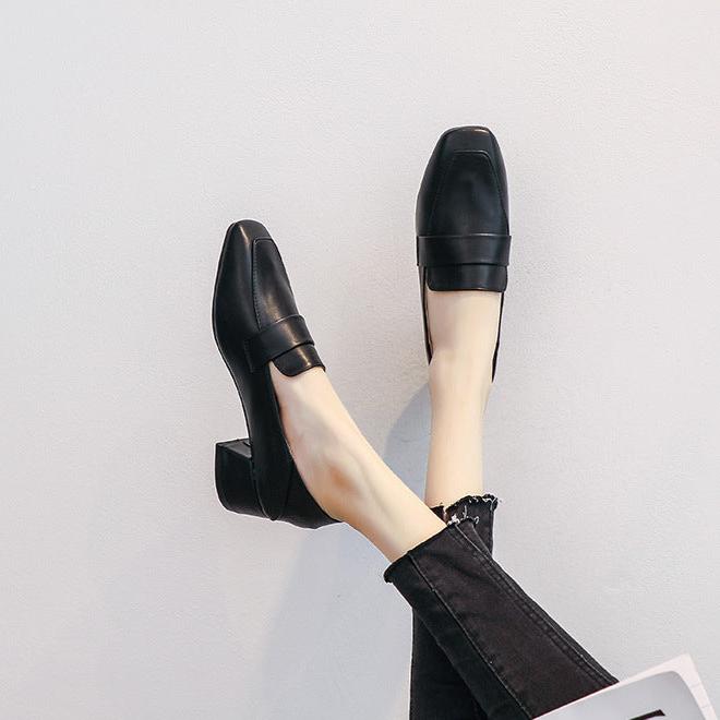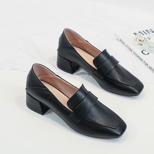 Womens's Square Toe Chunky Heel Loafers
